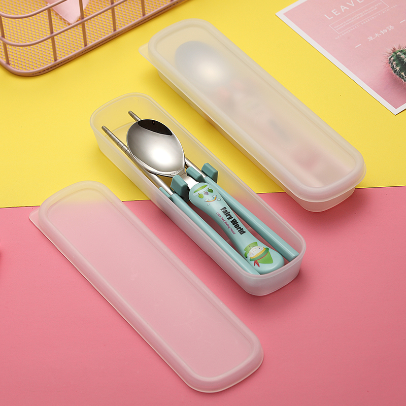 Creative Children Cutlery Sets 304 Stainless Steel Chopsticks Spoon Suit Baby Cute Portable Cutlery Three Sets