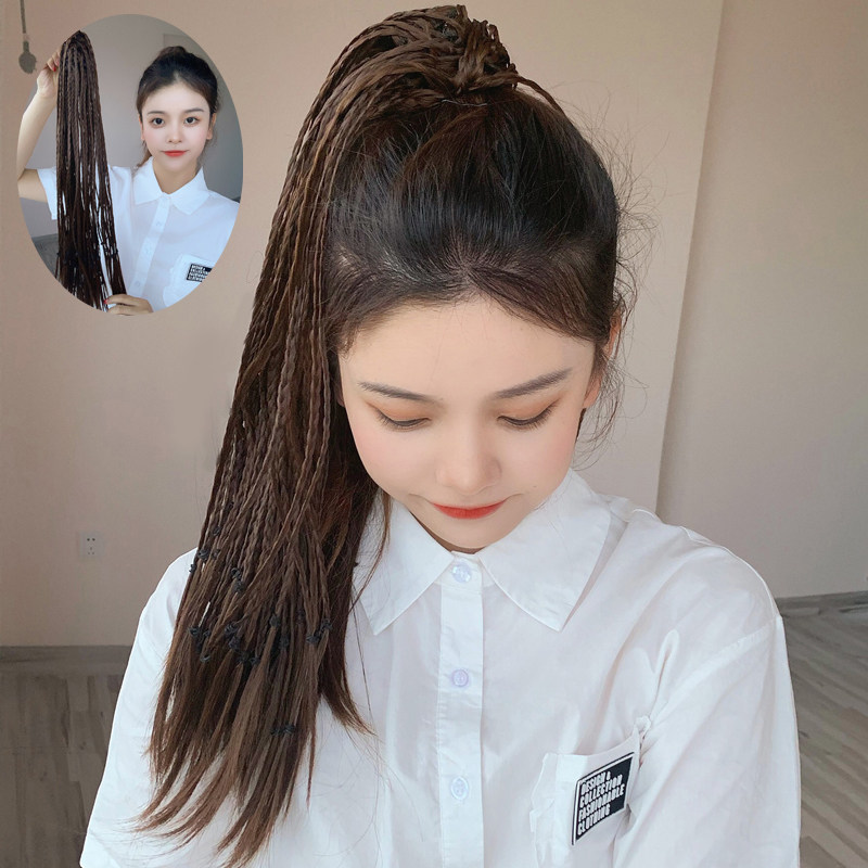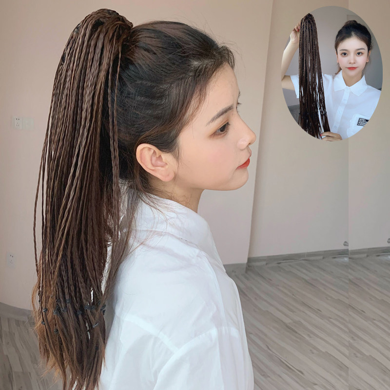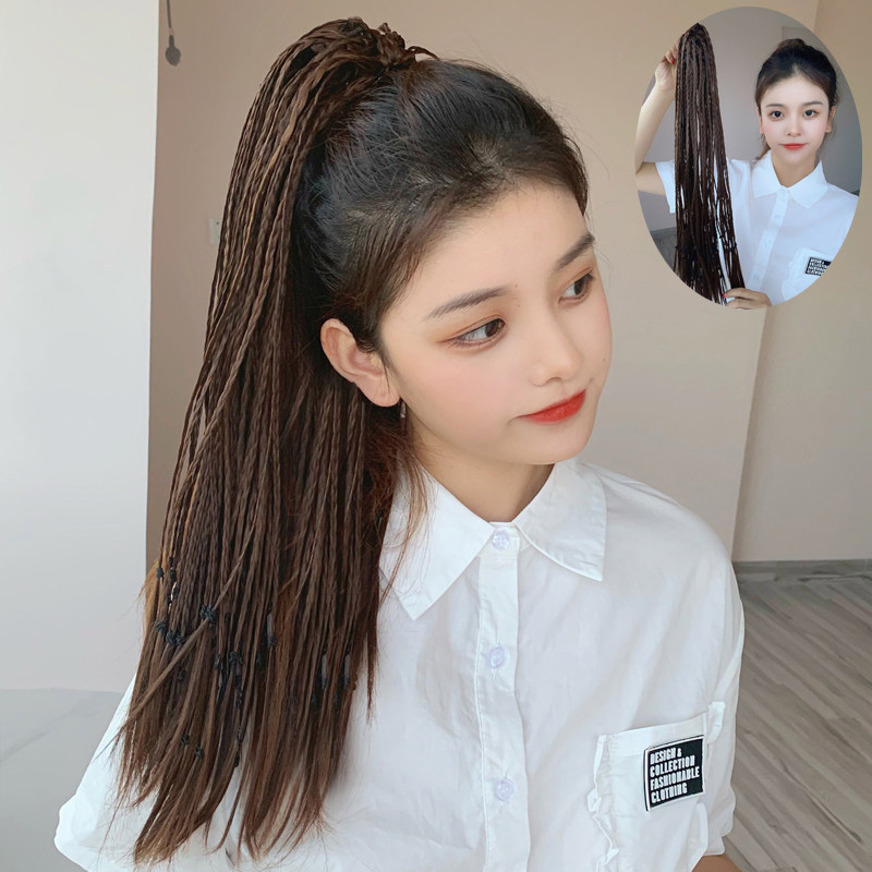 Net red black high ponytail wig female straight hair natural clip-on ultra-light hip-hop ponytail medium long hair