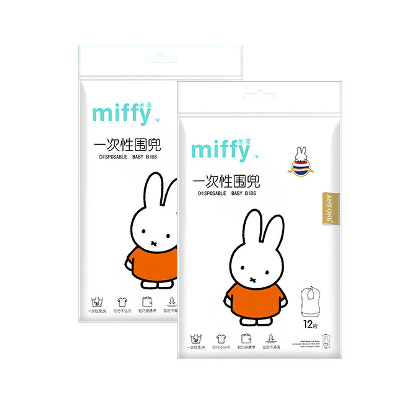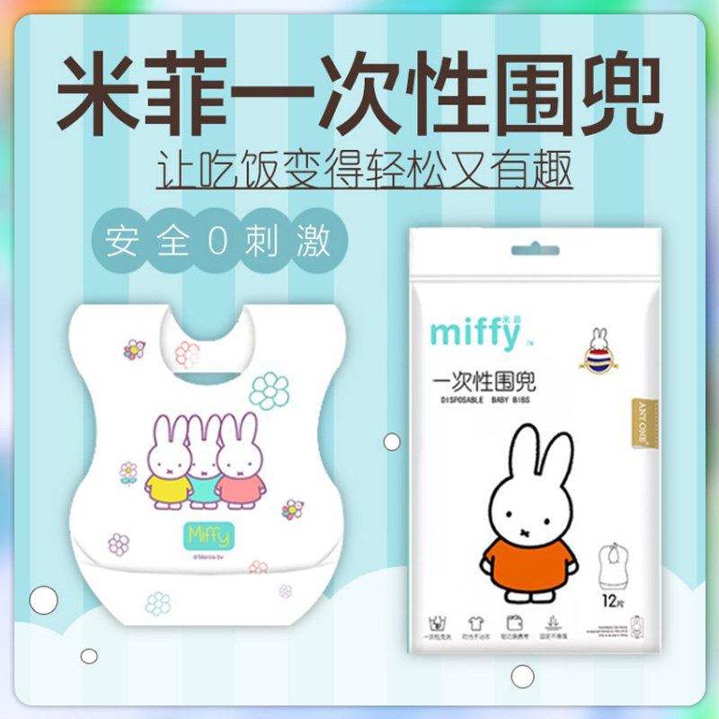 Miffy baby bib Super soft disposable leave-in bib Children's waterproof and oil-proof portable eating bib 12 pieces a pack
