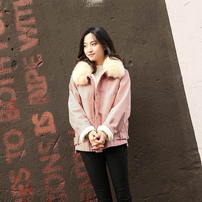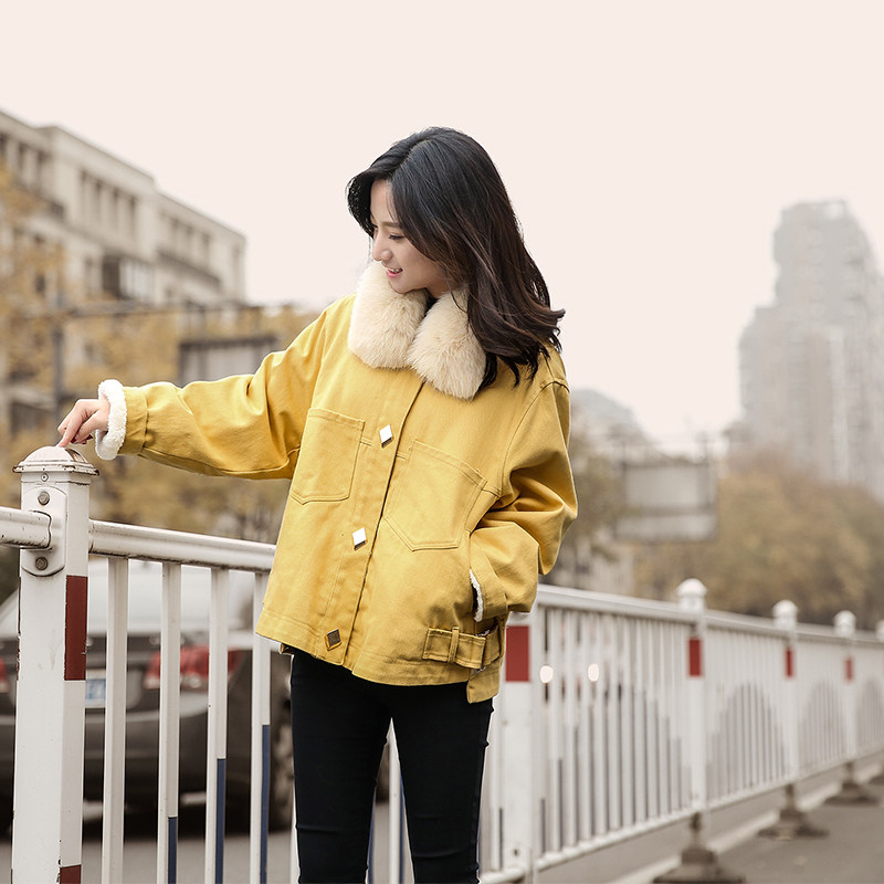 Denim Lamb Wool Jacket Winter Cotton Clothing Oversize Female Tide Short ins Short and small Lambs Cashmere Cotton Cloves