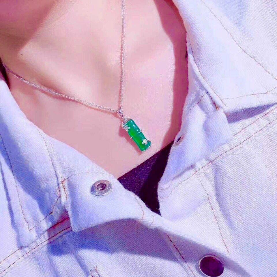 Sterling silver chain jade with step by step jade pendant necklace Female rich Bamboo Hetian Jade jade color pendant Clavicle chain promotion
