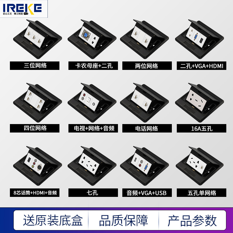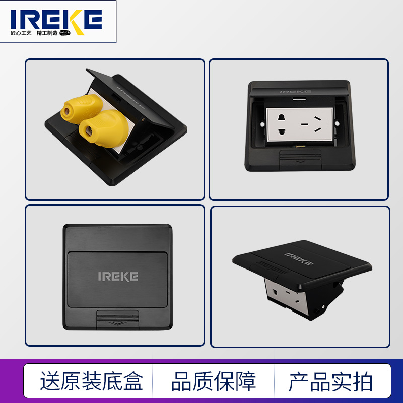 IREKE black pop-up ground socket hidden five-hole belt network cable usb audio hdmi weak current ground socket