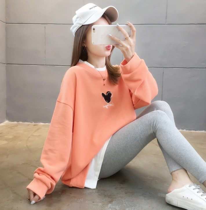 2022 Spring-autumn pregnant women's suit Chaoty Spicy Mother Large Size Women's Wear in a long version of fake two sets loose cover for small children