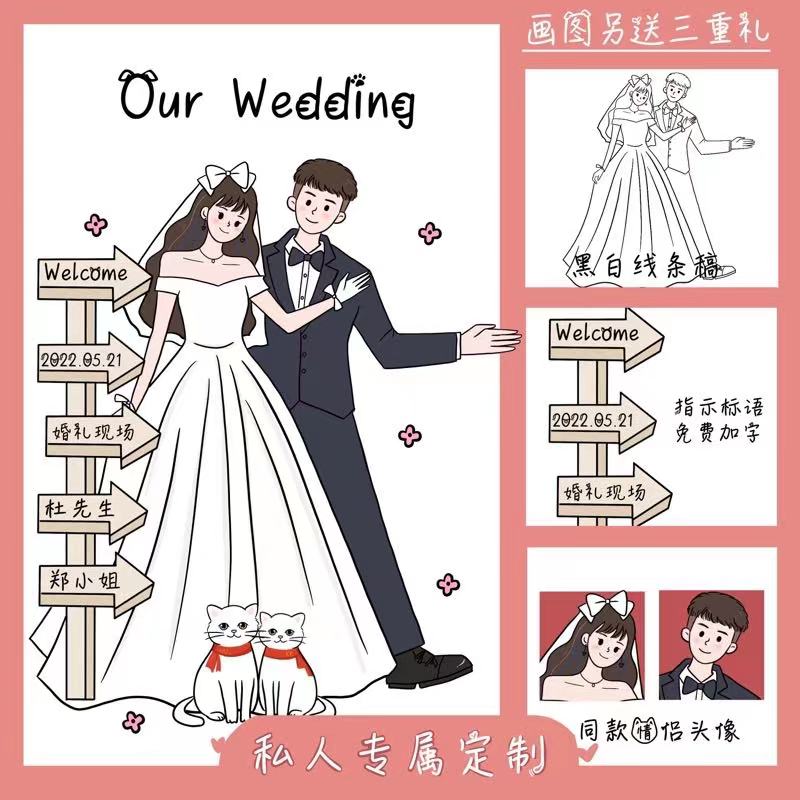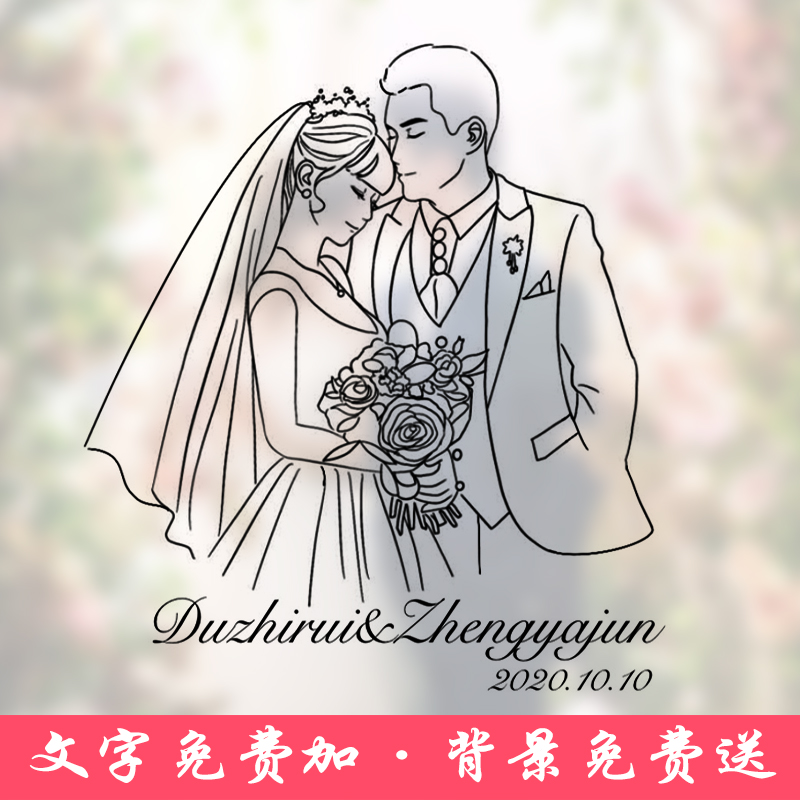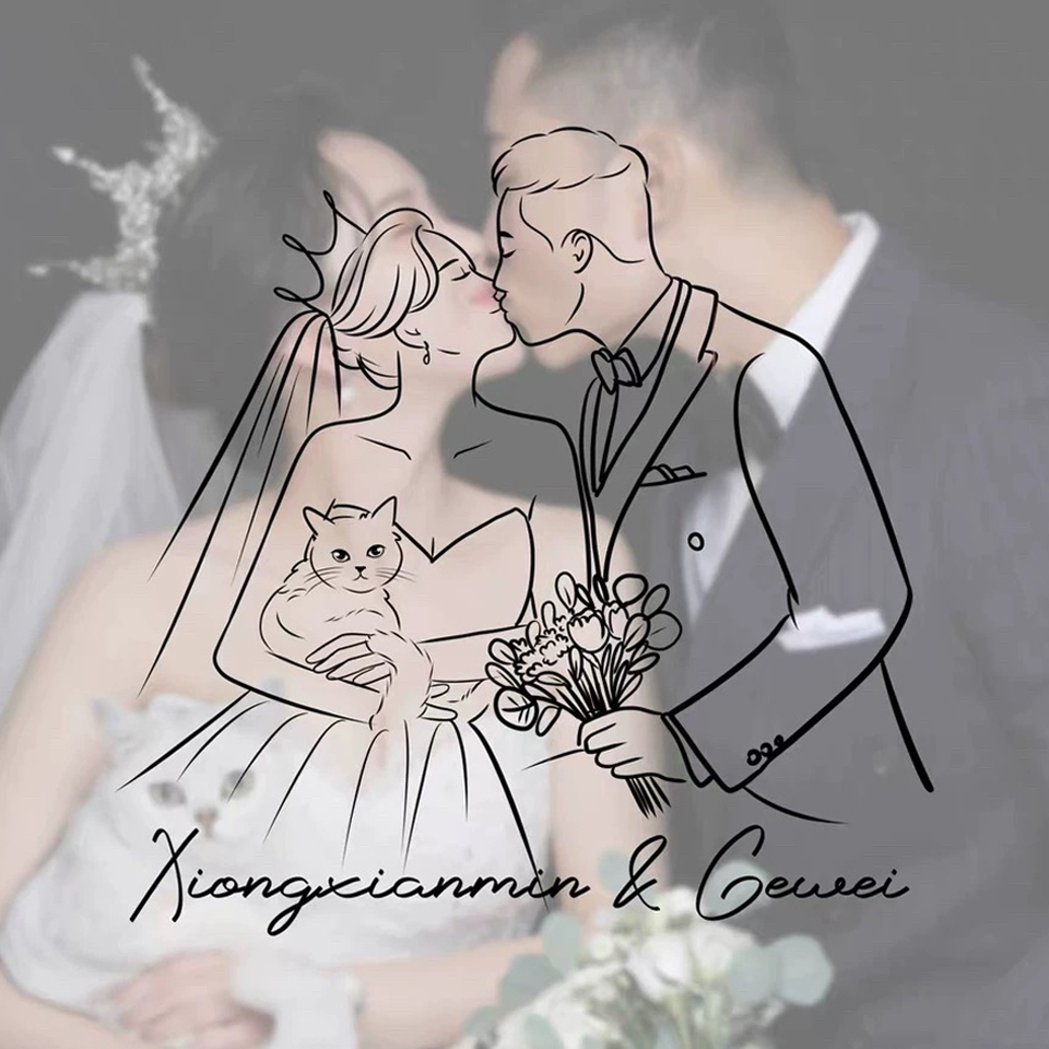 Wedding logo design custom silhouette stick figure line logo hand-painted character wedding photo stand brand name head