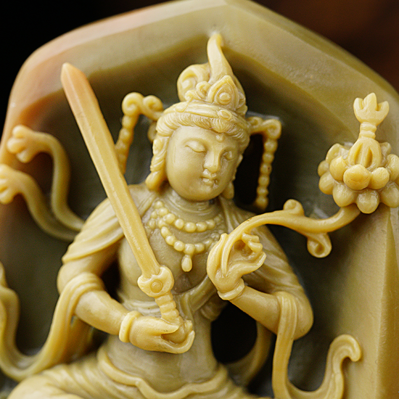 Alxa color jade agate Manjusri Bodhisattva new features rich and exquisite features agate Su Gong features cute pet powder