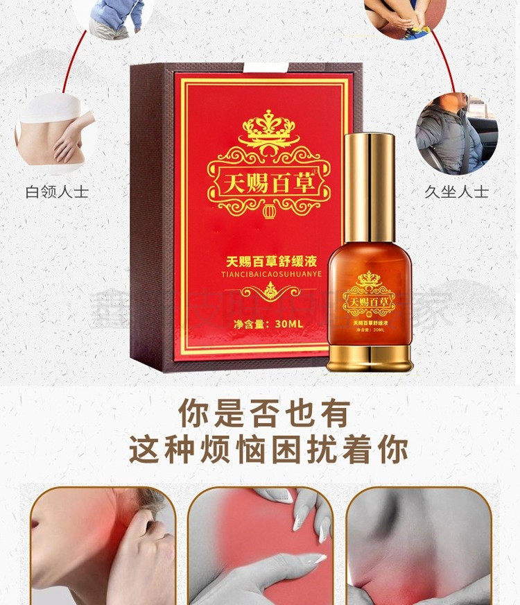 Tianci Baicao Soothing liquid Hands and feet paralysis Neck and shoulder discomfort Body fatigue Lumbar muscle strain Lumbar leg numbness Active oil
