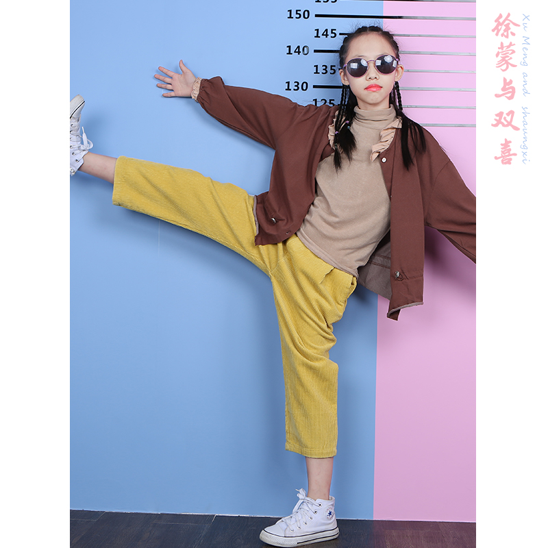 Female spring and autumn small girl thick apricot corduroy leggings Small and large children Apricot baby thick pants