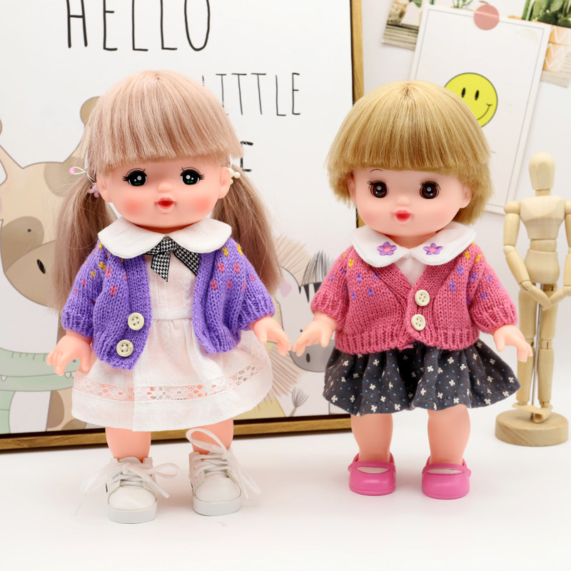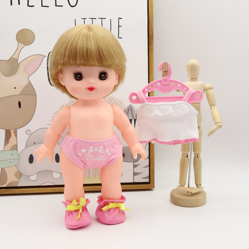 Red light brown color pink rice white naked doll long hair naked doll Short hair pink printed shorts big red wool cap White ball red scarf pink knitting hat knitted wool carrot knitted