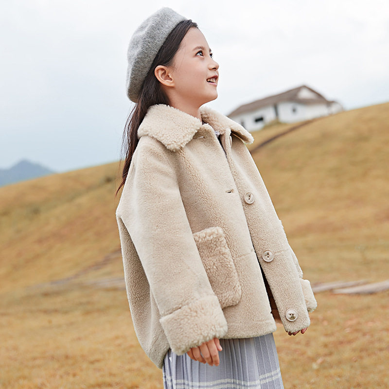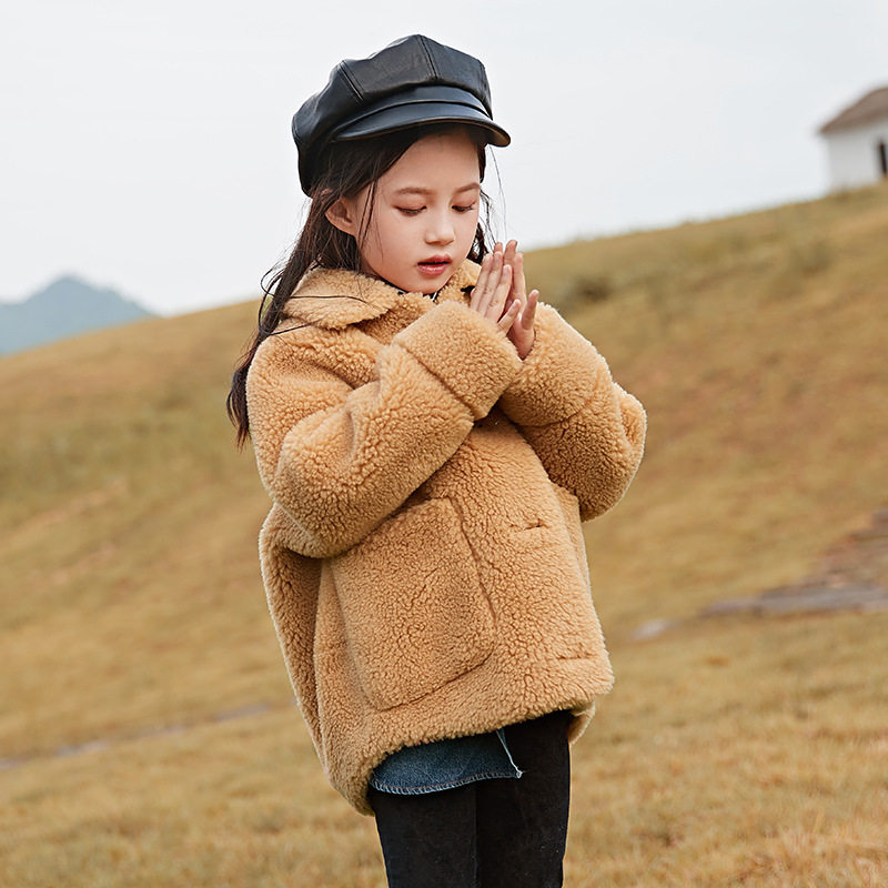 Children's clothing winter girl jacket small scents wind grain plush blush blush blouse with thickened rocking grain suede lamb jacket foreign pie