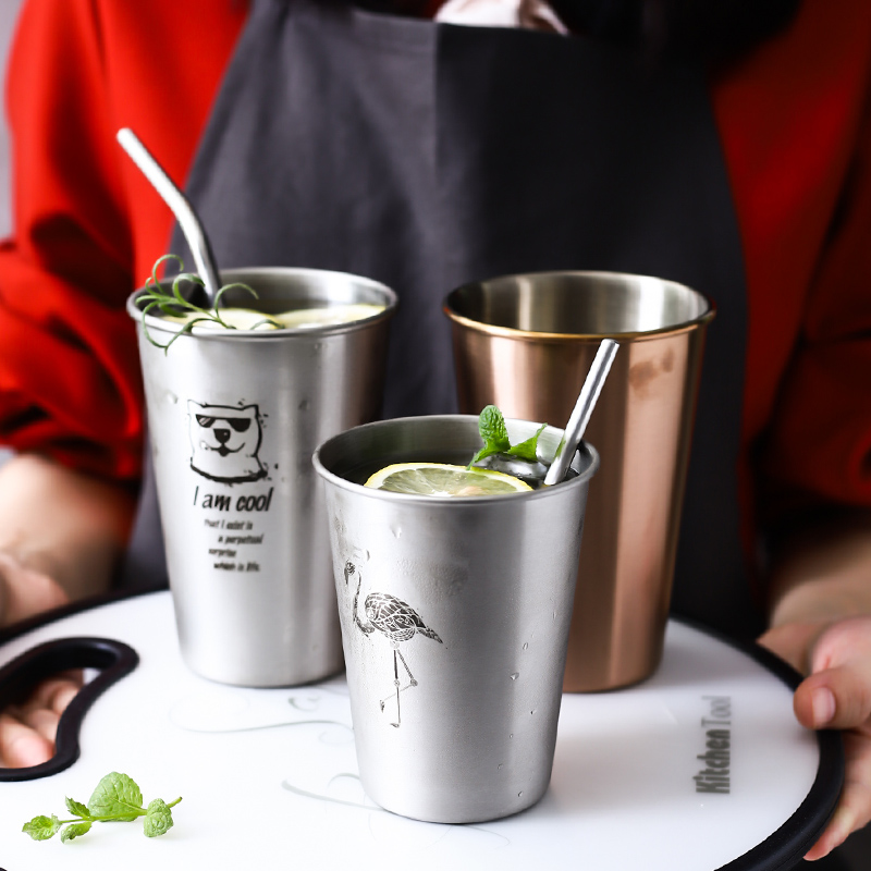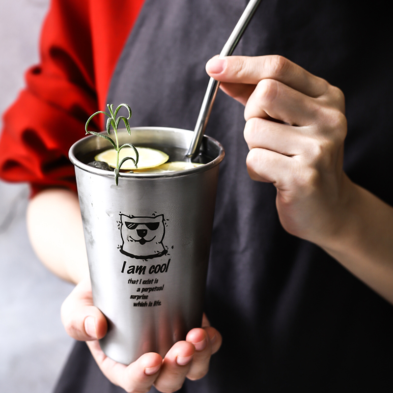 Industrial style 304 stainless steel beer mug ins juice cup home drinking cup anti-fall creative mouth cup cold drink cup