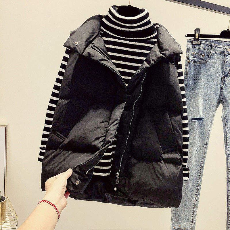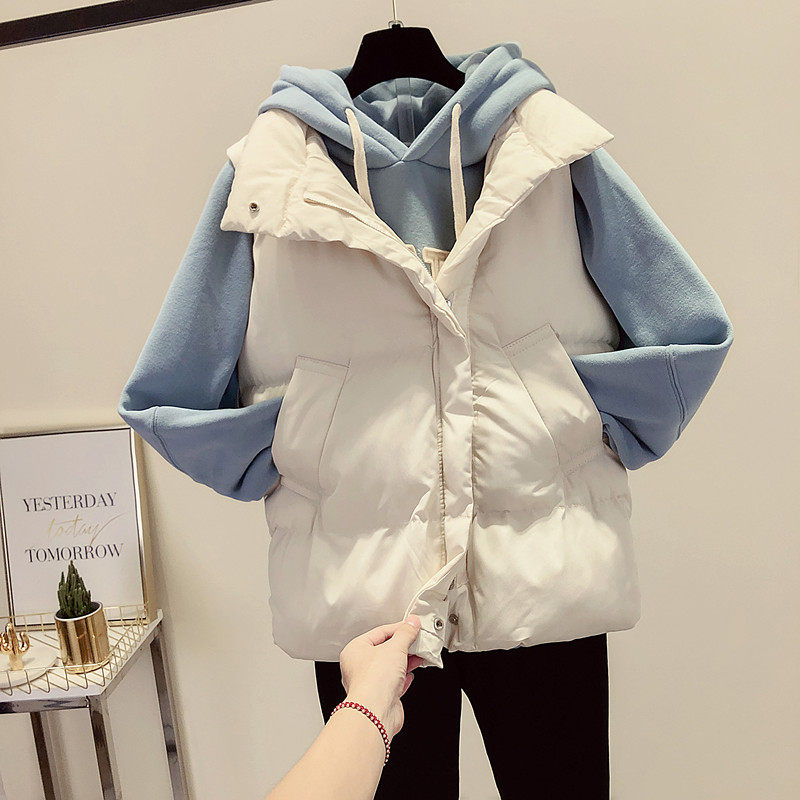 Waistcoat woman 2022 spring autumn new Korean version loose short version cotton padded jacket 100 lap collar down cotton waistcoat jacket jacket