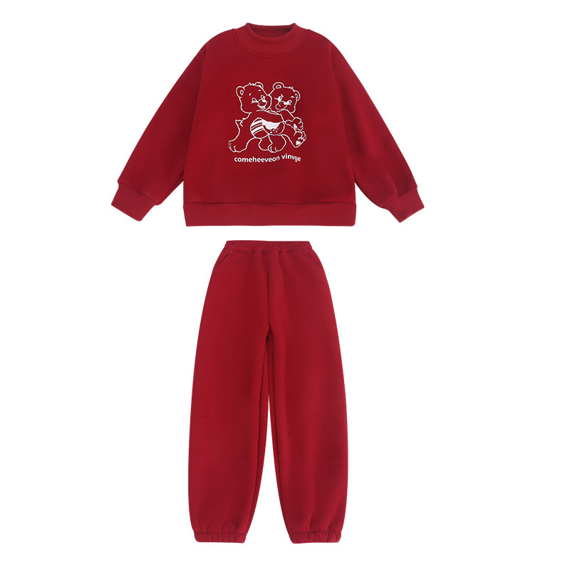 Girls' New Year's Happy New Year's Eve suit 2023 new Yangqi Winter Children Cavet Thickened Sweater Two sets-Taobao