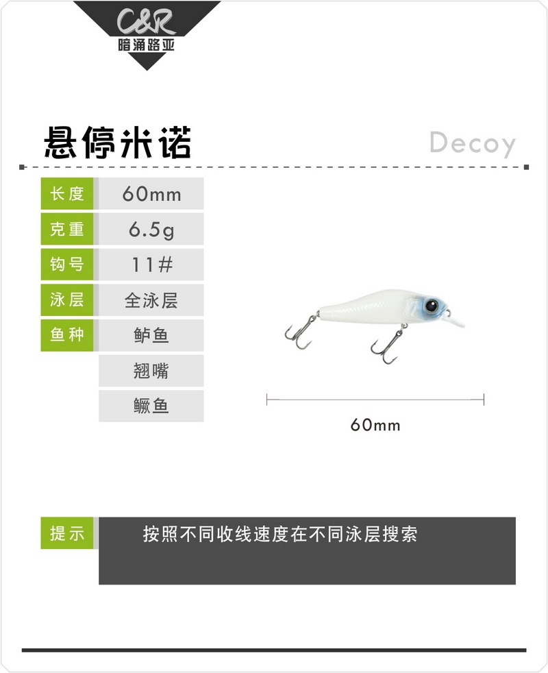 (Foreign Trade Clearance) Mandarin Fish Upturned Mouth Submerged Mino Full Swimming Layer Short Tongue Plate Ultra-Long Casting Fake Bait Bass Road Subbait