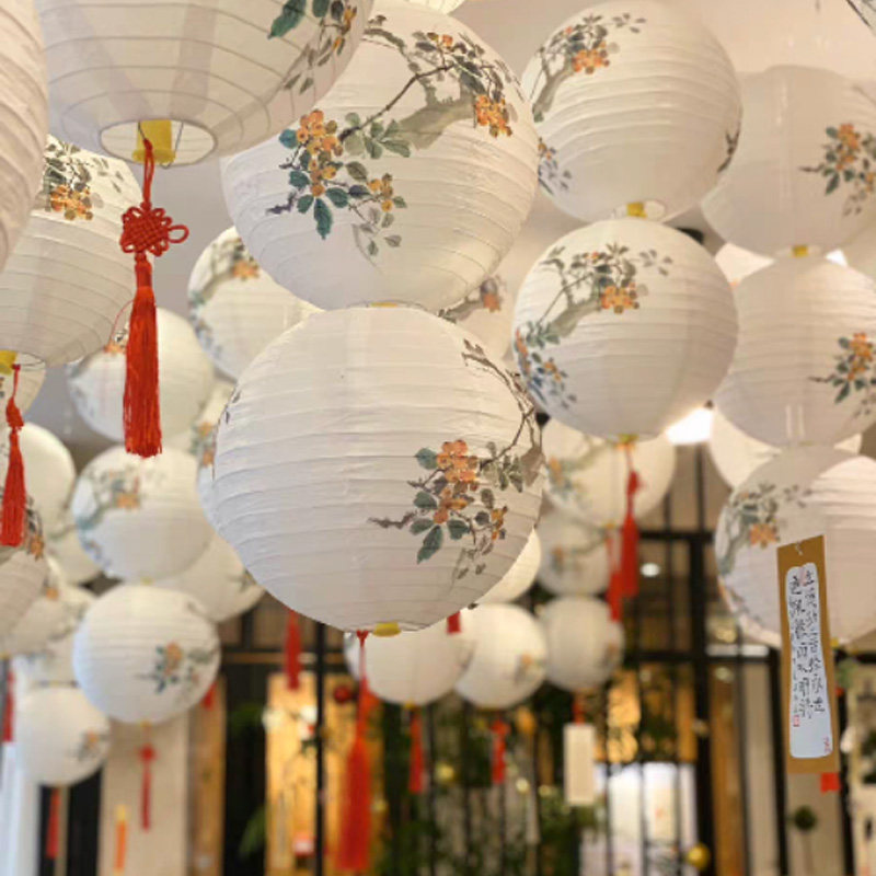 Antique Paper Lantern Lantern Decoration Mid-Autumn Festival Atmosphere Hanging Decoration National Style Red Lantern Chinese Portable Lantern Scene Props Paste
