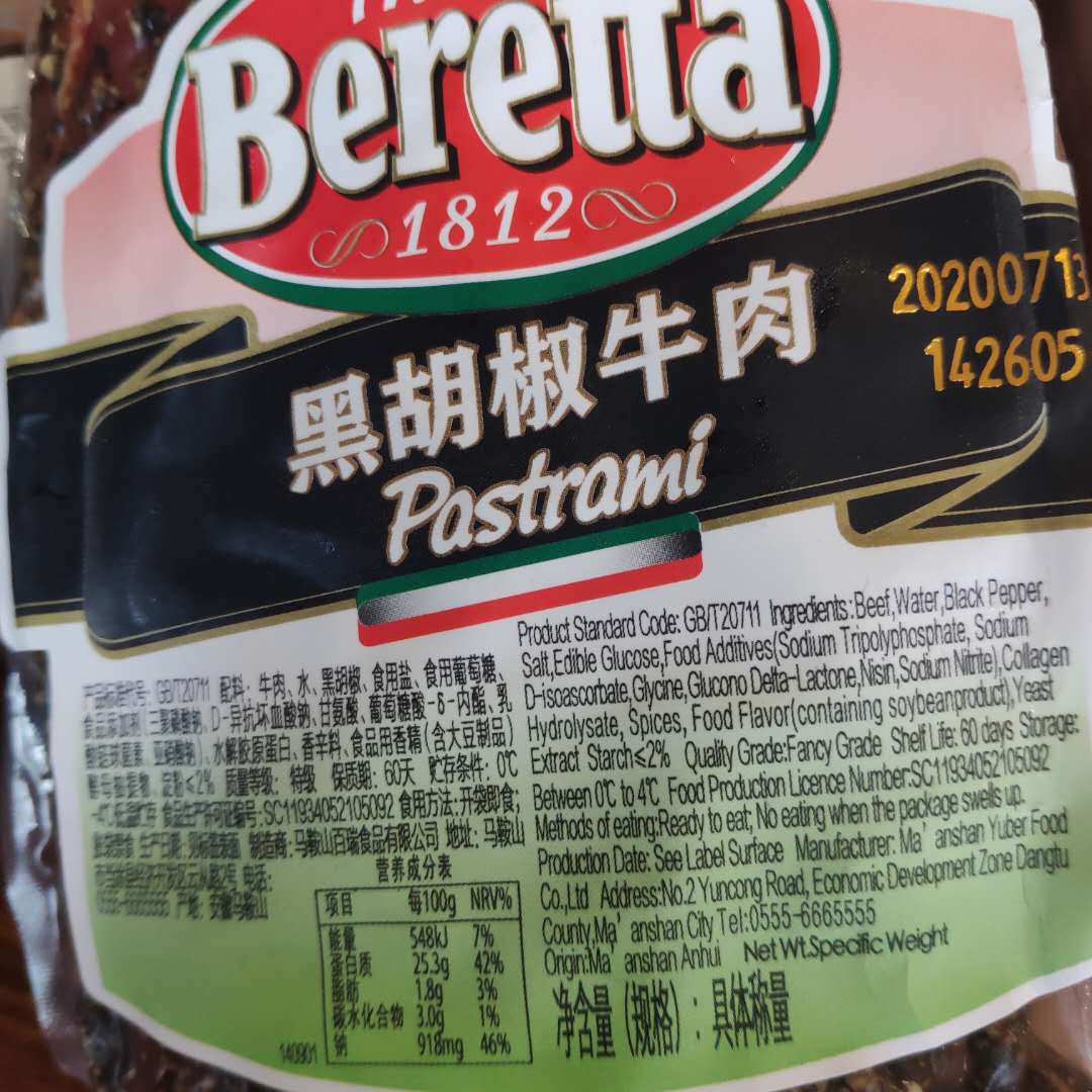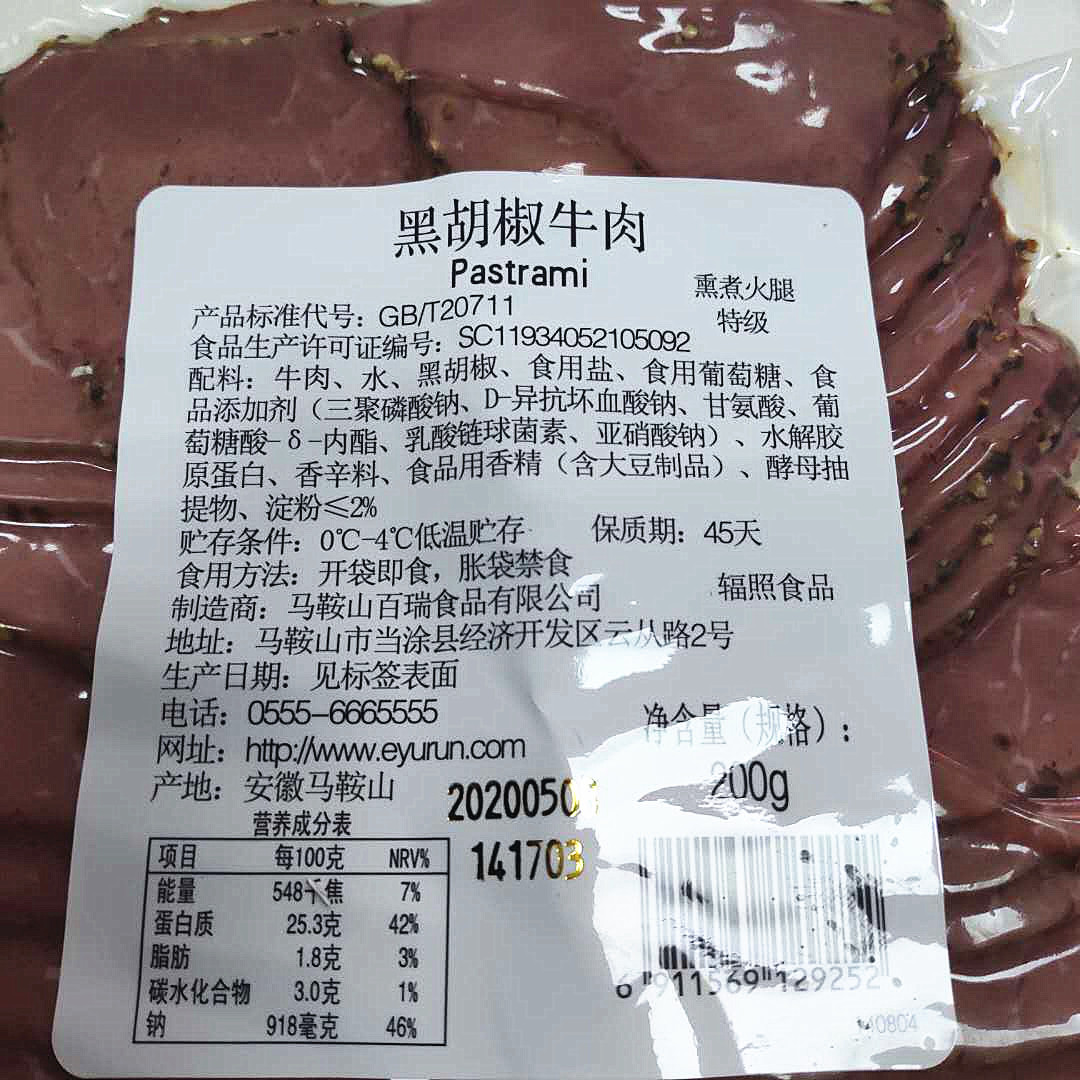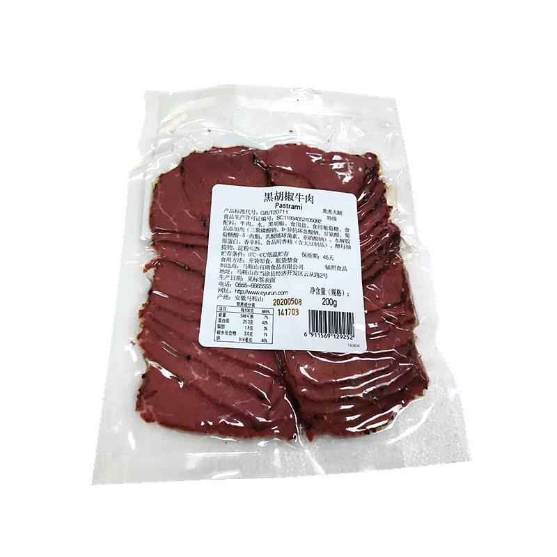 Yurun Bairui black pepper beef slices 200g Pastrami light sandwich beef slices ready-to-eat