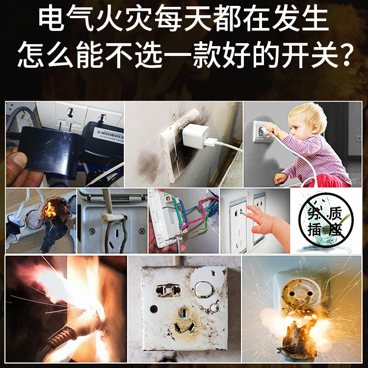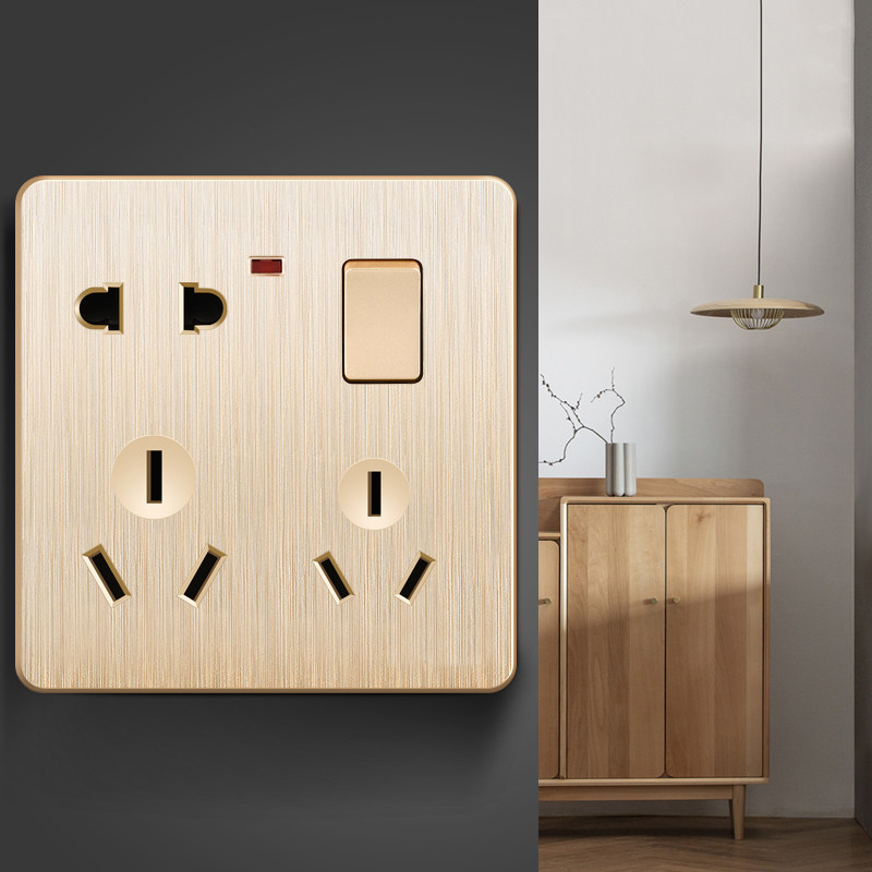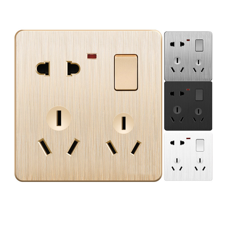 Six-hole socket with switch air conditioner big three plug-in electric water heater special panel porous 16a high-power wall type