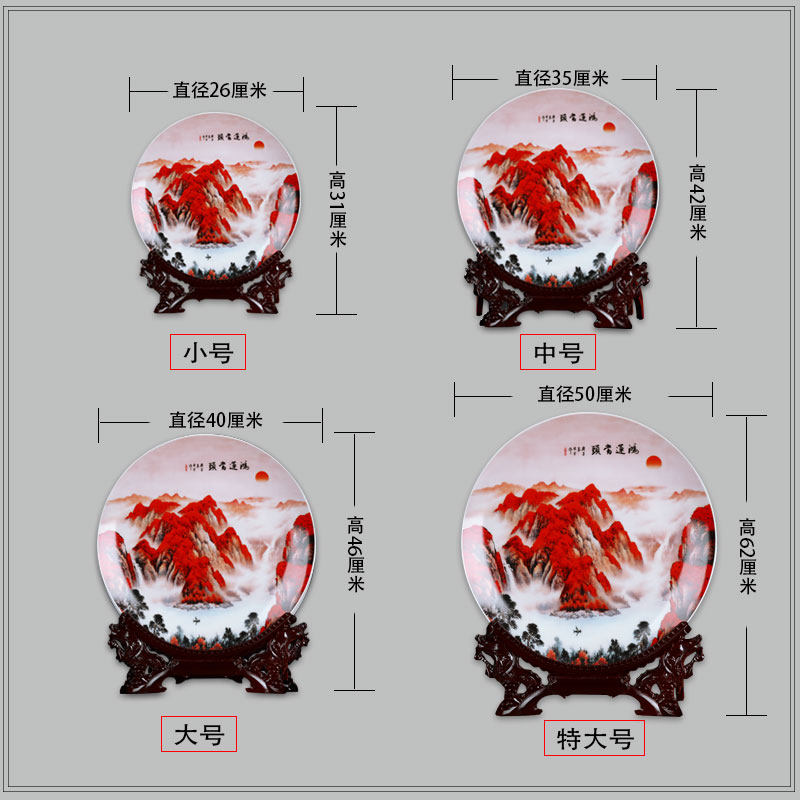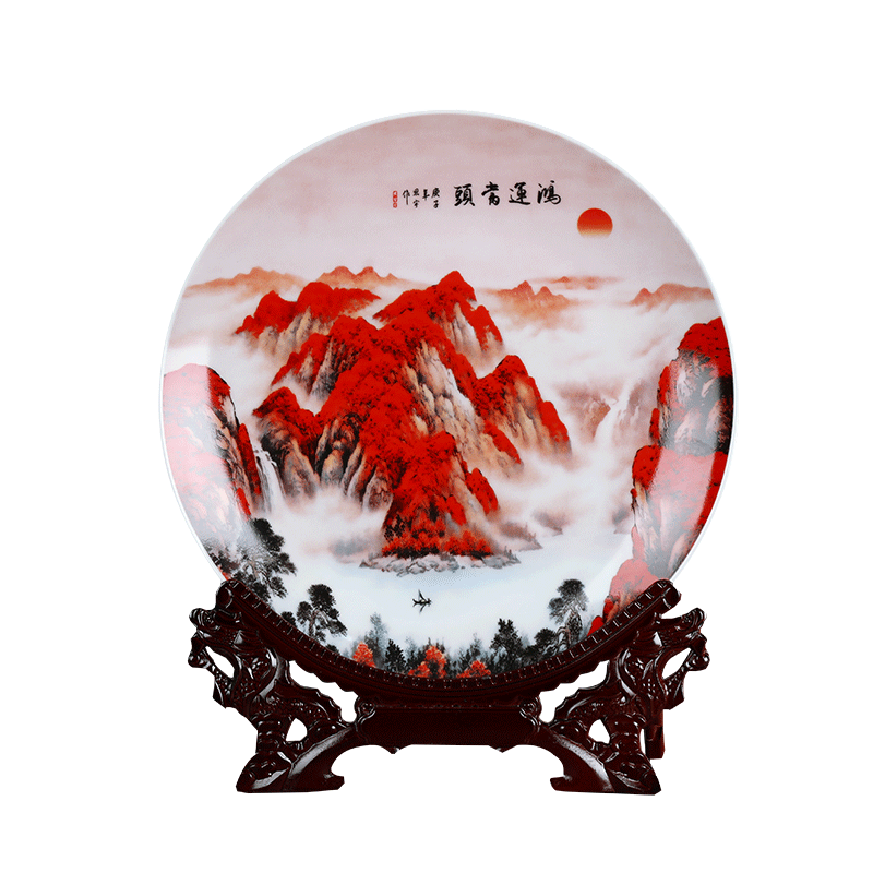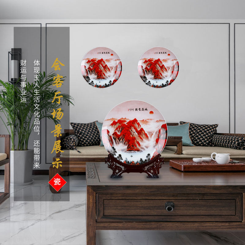 Jingdezhen ceramics Hongyun when the head of the Chinese-style hanging plate decorative plate sitting plate wine cabinet entrance home living room ornaments