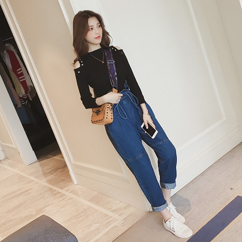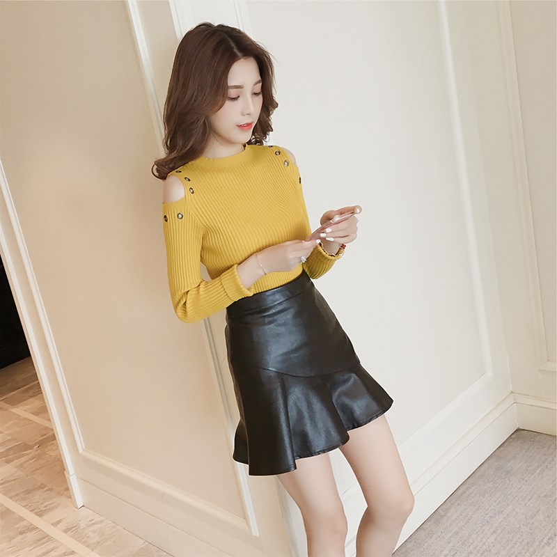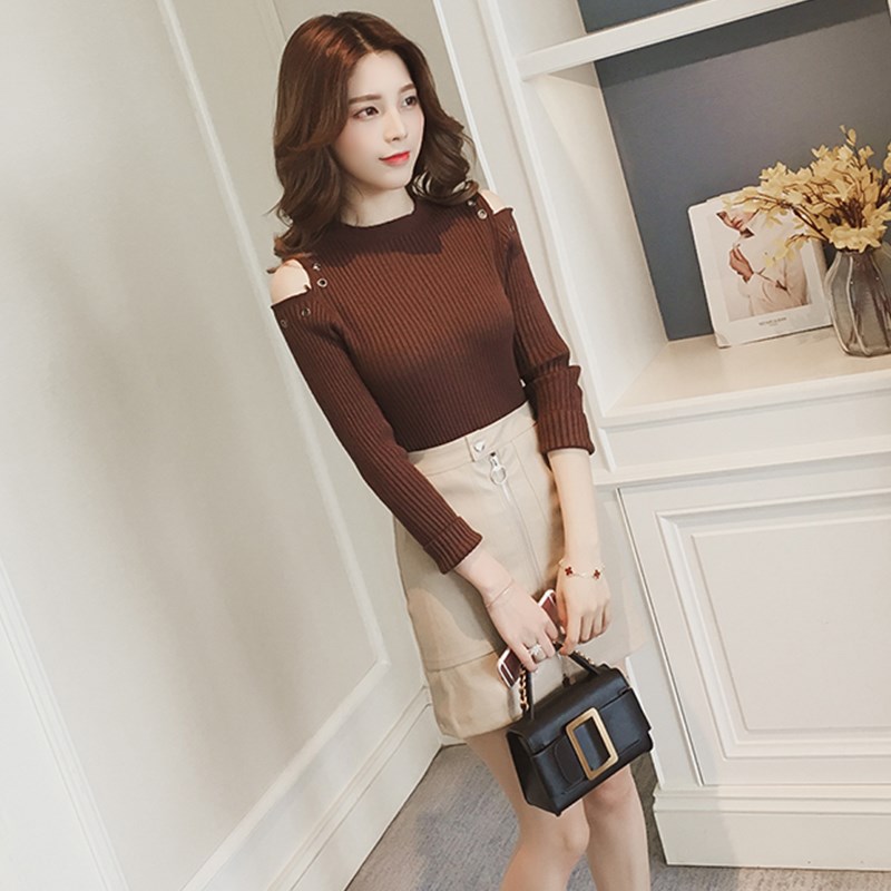 Autumn Winter Women's Dress Sexy Tight Fit Short Student Foreign Pie Pure Color Long Sleeve Open-shoulder T-shirt With Underknitted Sweatshirt