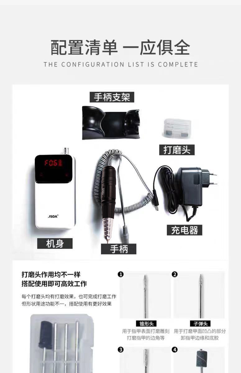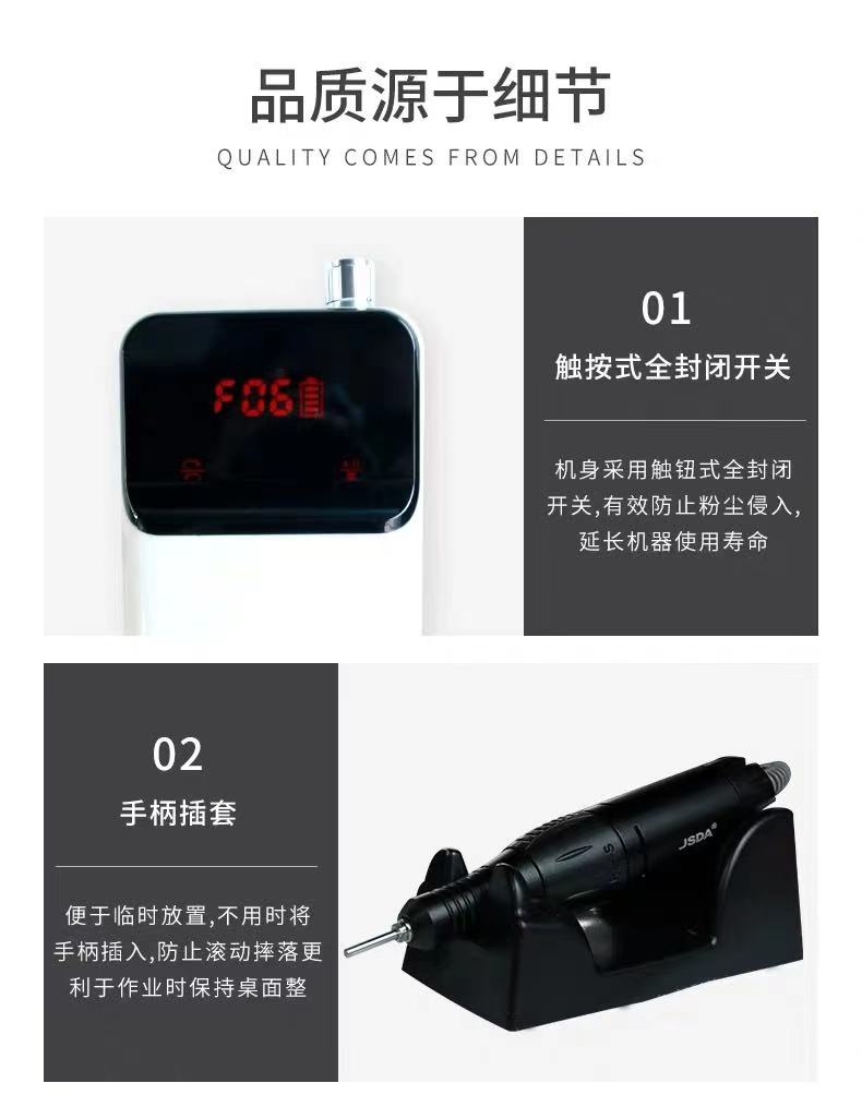 Jiesida 201 grinding machine portable professional charging nail remover LCD touch screen high-power nail shop dedicated