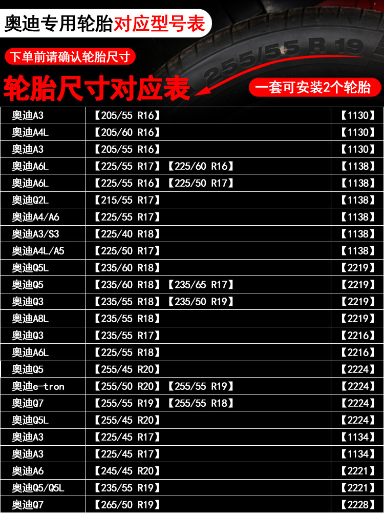A3 (205 55 R16) (1130) A4L (205 60 R16) (1130) A6L (225 60 R16) (113