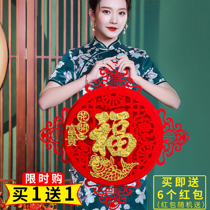 2022 New Year's three-dimensional blessing door sticker decoration into the house Daji door sticker housewarming decoration living room decoration supplies