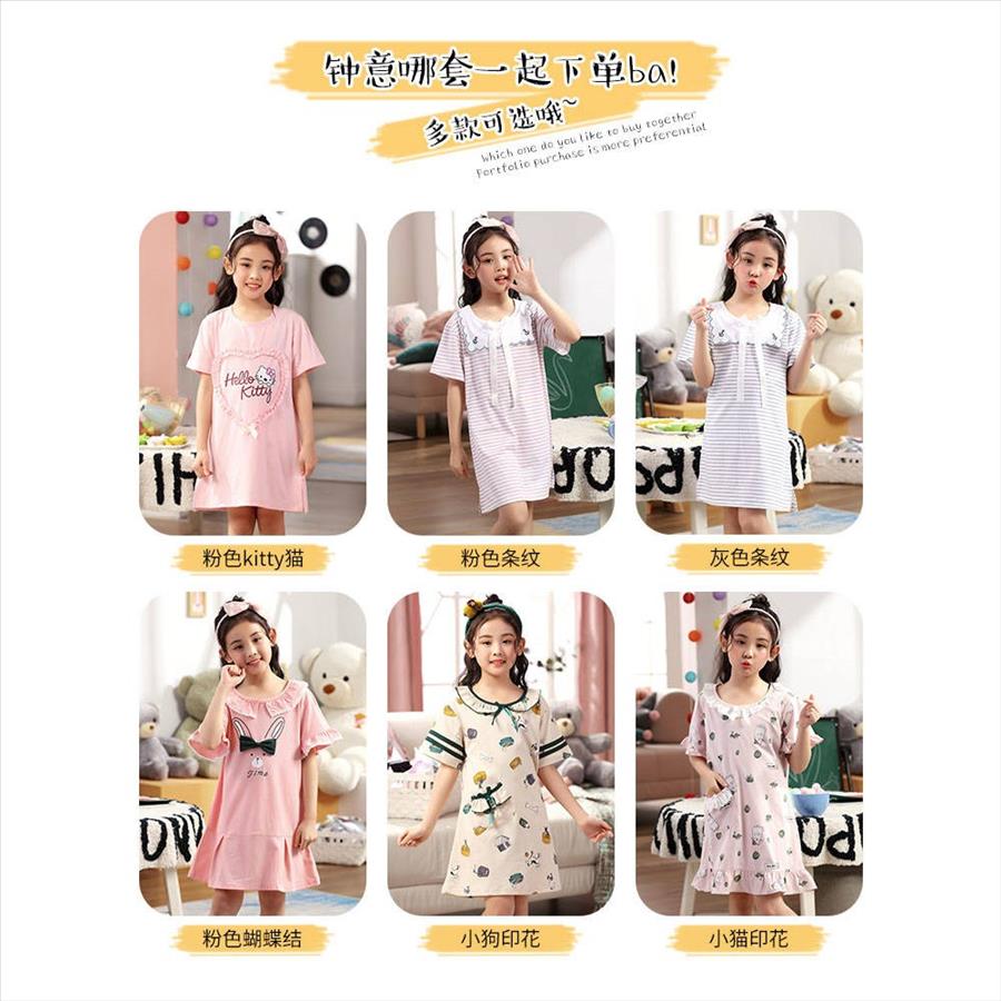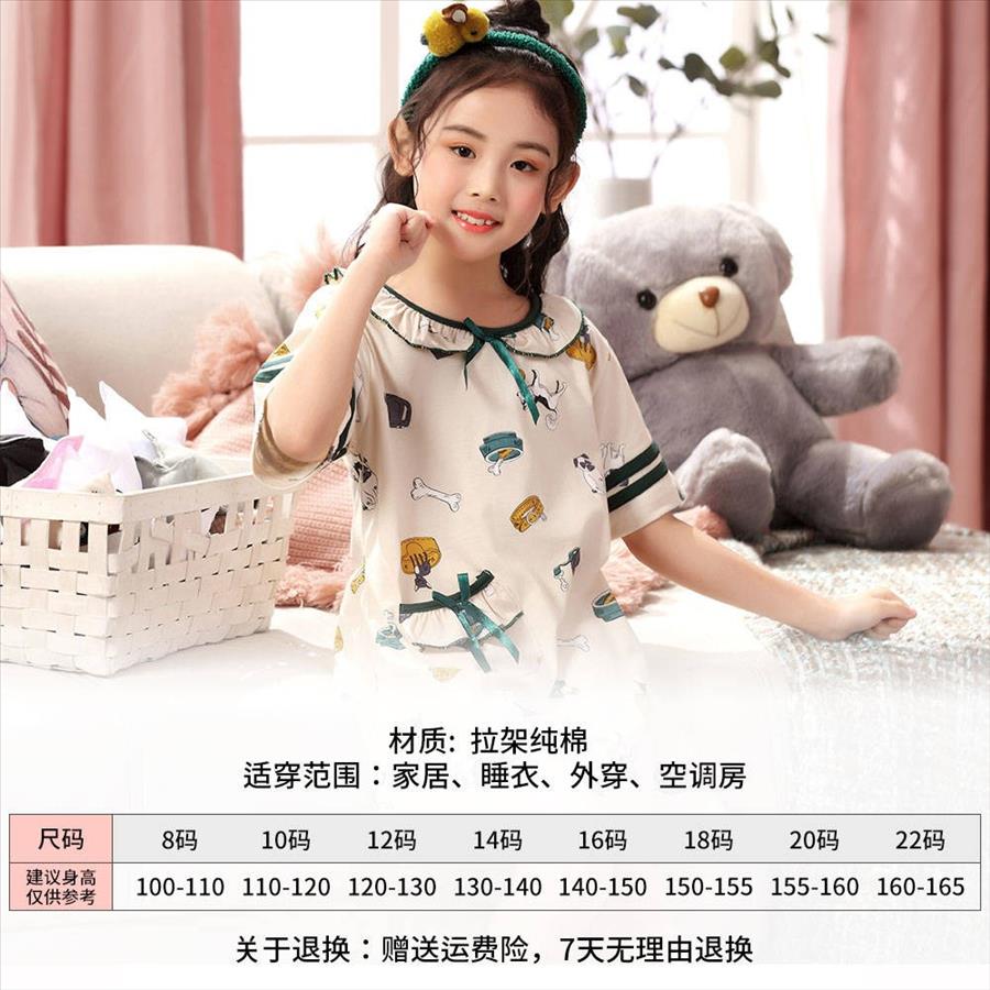 Girls' nightdress pure cotton middle-aged children's pajamas women's summer short-sleeved princess parent-child wear mother-daughter thin section home