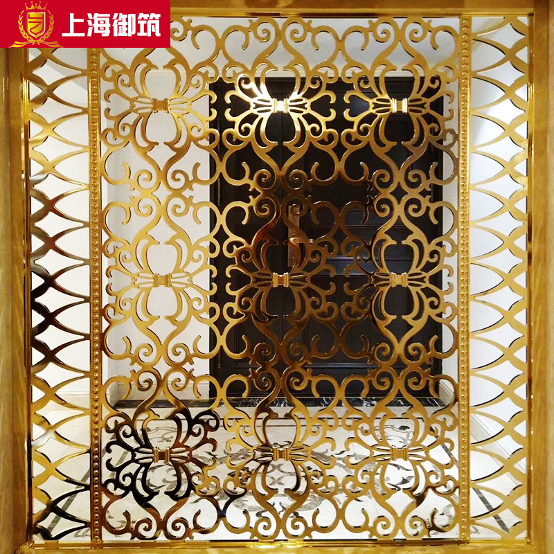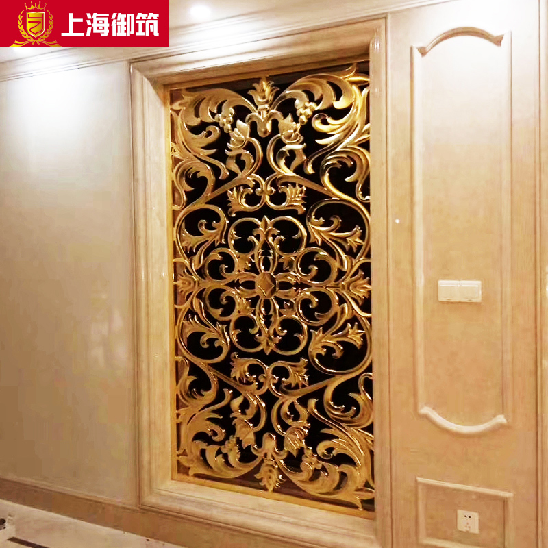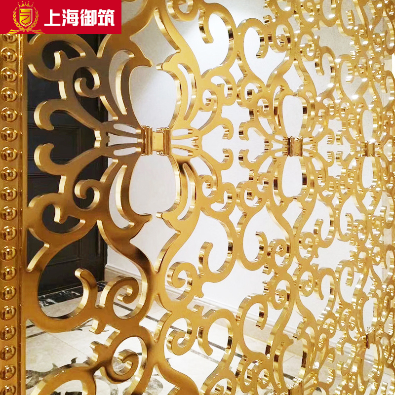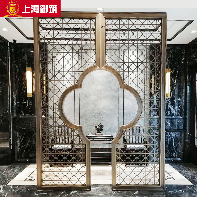 New Chinese-style screen partition aluminum carved relief loft hotel living room gold carving custom light luxury decorative pure copper screen