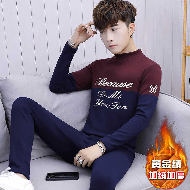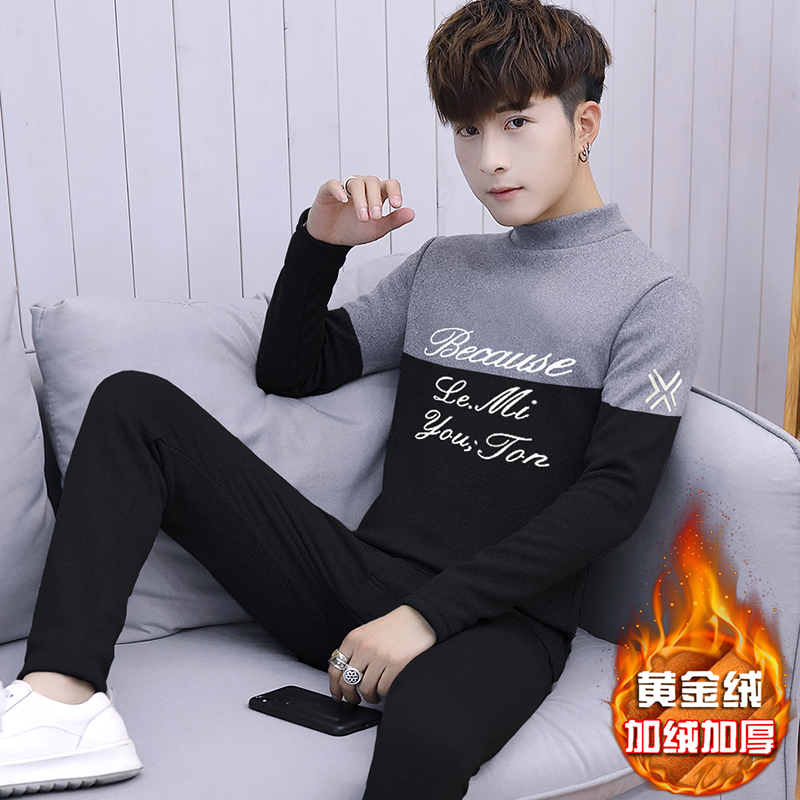 Warm underwear men's suit thickening in winter and plus teen students anti-cold autumn sweater blouse can be worn outside