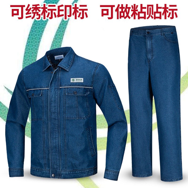Denim overalls suit male State Grid electrician electrician welder spring and autumn dirt-resistant long-sleeved labor insurance clothing customization