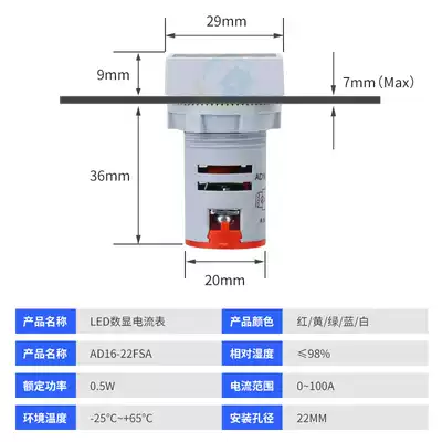 Digital display AC ammeter indicator light square current signal lamp aperture 22mm