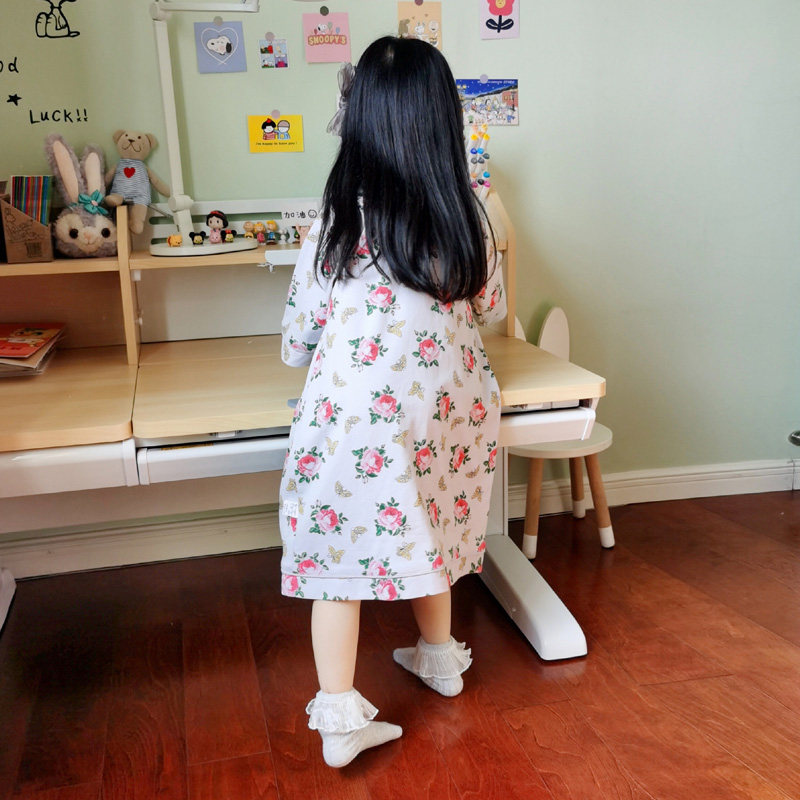 Hey baby, air conditioning room girl in the big child's pajamas four seasons single - layer cotton against door - robe bathrobe sleepy dress