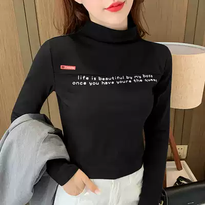 Semi-high collar base shirt Women autumn and winter 2020 new wild long sleeve T-shirt with spring and autumn fashion black top
