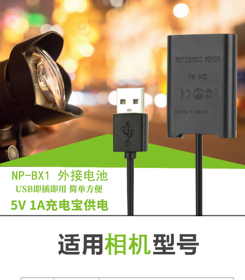 Applicable Sony black card ZV1 external connection battery camera M7 fake battery RX1R RX1R RX100 M6 BX1 USB external charging M3 M3 M4 M5 M2