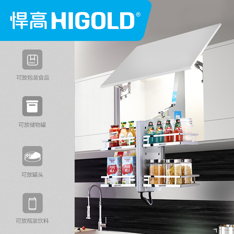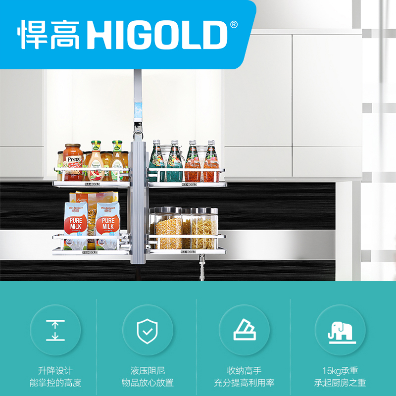 Huge lifting cabinet drop pull-down basket container wall wall flavor basket double deck kitchen plate dampened buffer