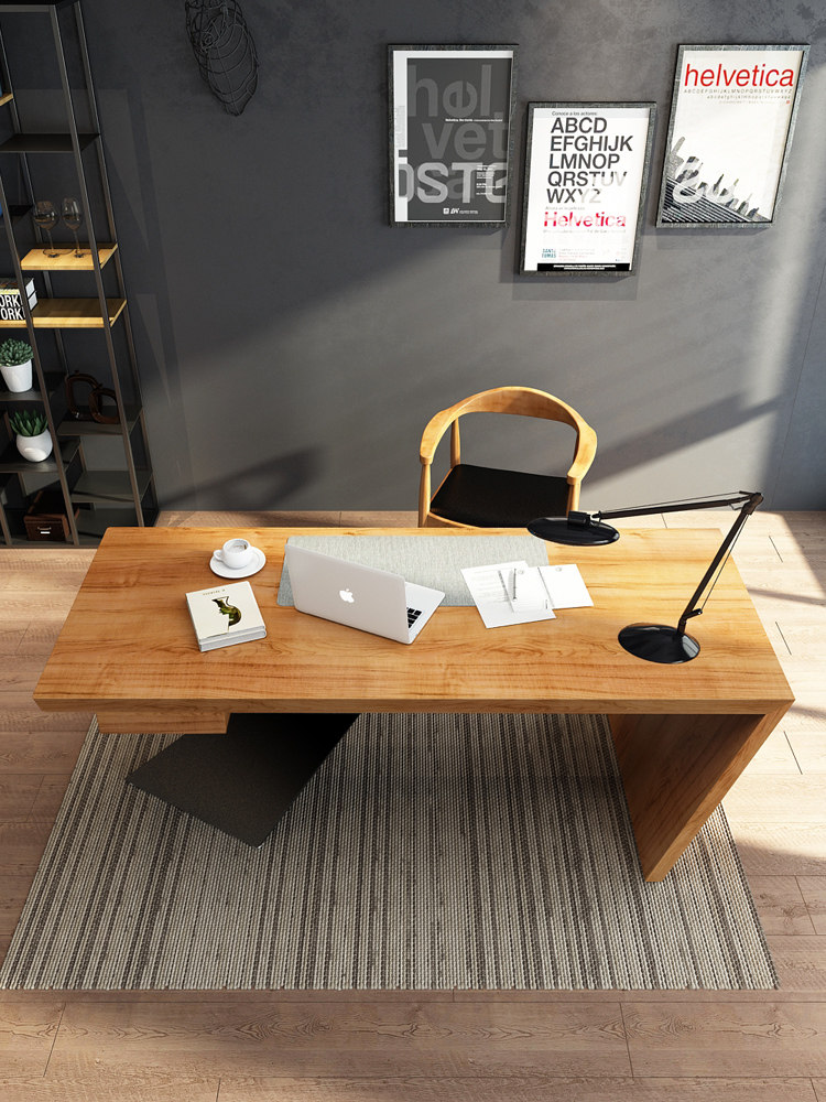 Solid wood large plate desk Home computer table and chairs Combined bedroom minimalist modern desk American manager Boss Table