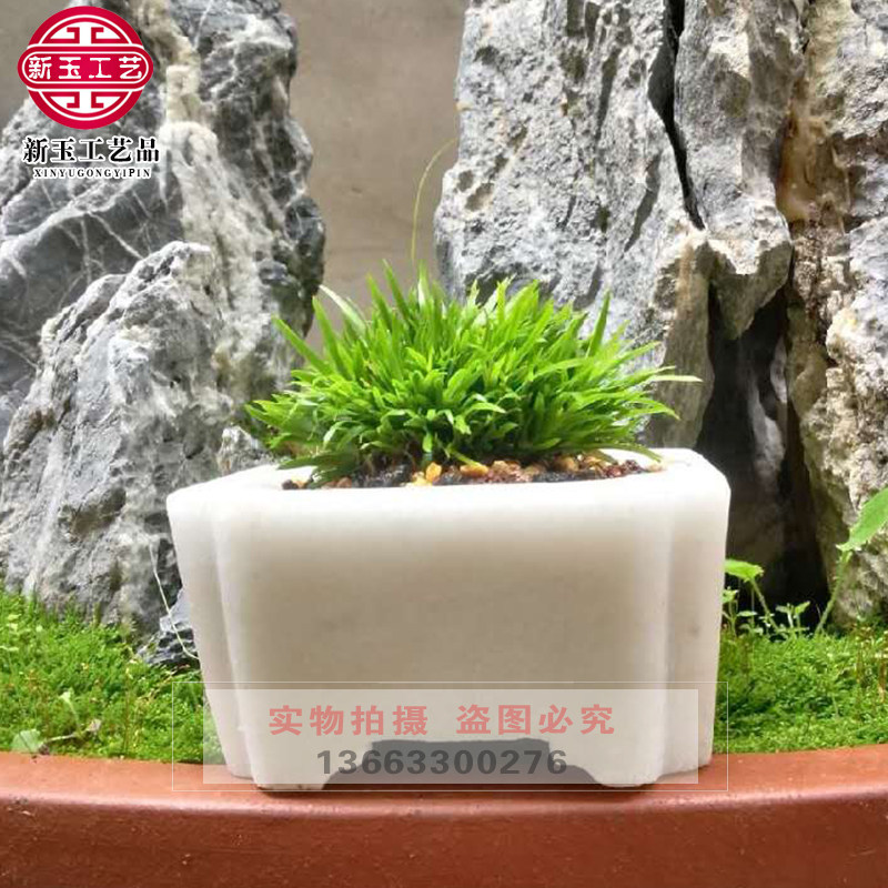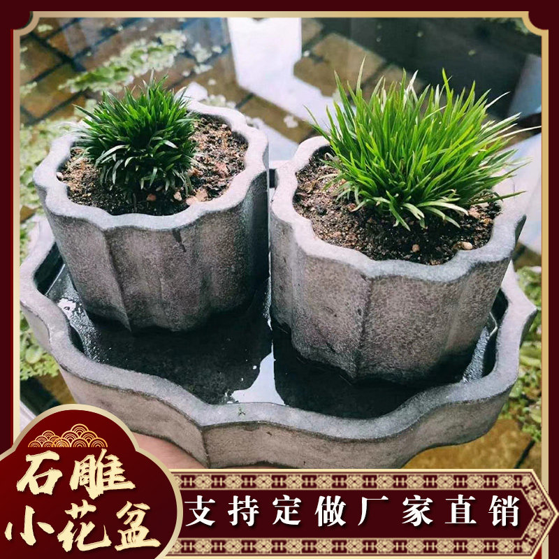 Stone Carving Green Stone Small Stone Basin Imitation Ancient Orchid Bonsai Stone Flower Pot Indoor Raising Flowers Decoration Small Green Stone Basin Hem