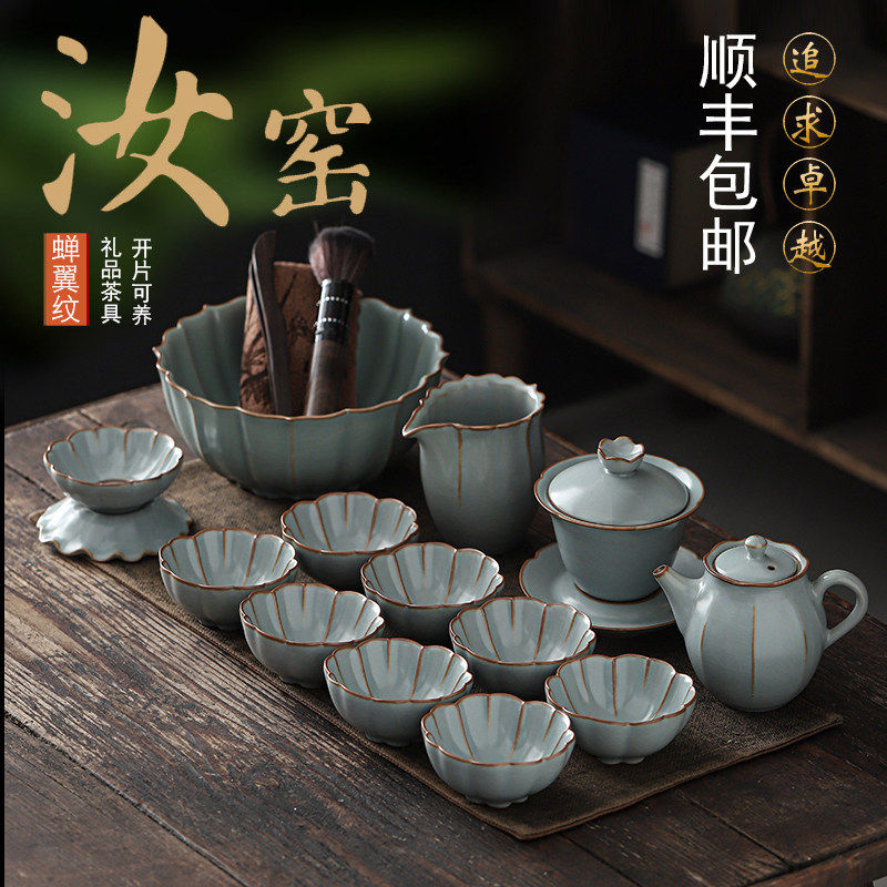 Ru kiln petal cup (azure) 14-piece set Ru kiln petal cup (moon white) 14-piece set Ru kiln petal cup (azure-mix and match) 14-piece set Ru kiln petal cup (moon white-mix and match) 14-piece set Ru kiln