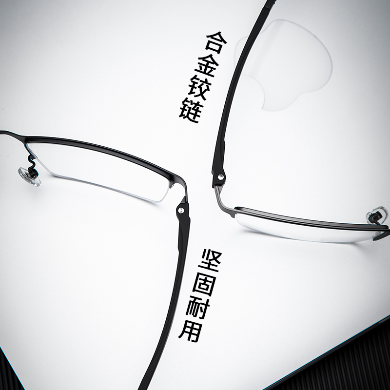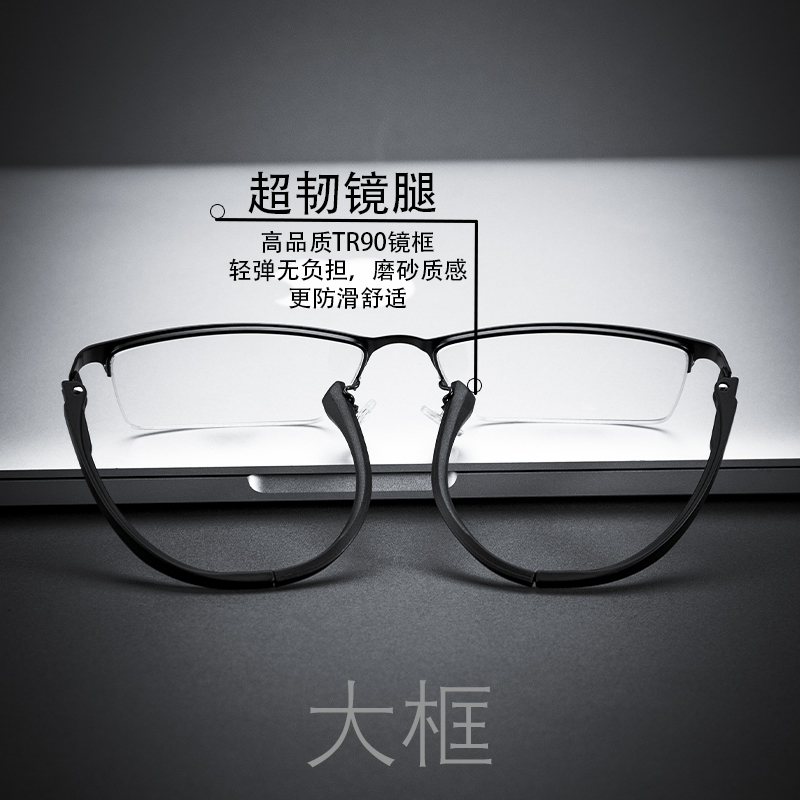 Large size half-frame myopia glasses men can be equipped with anti-radiation anti-blue light discoloration tablet eye protection eye myopia
