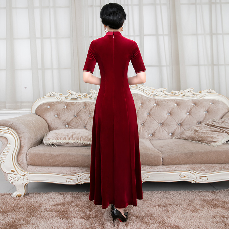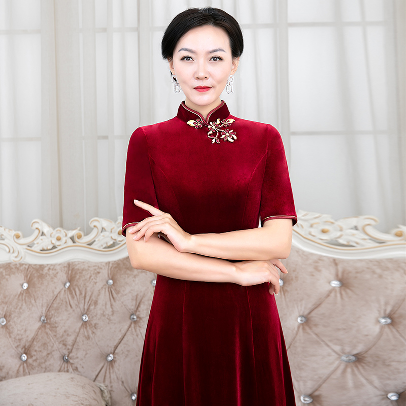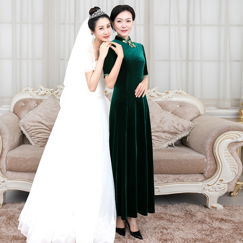 Velvet qipao wedding mom gown The middle-aged woman young and noble wedding party to the wedding gown wedding gown
