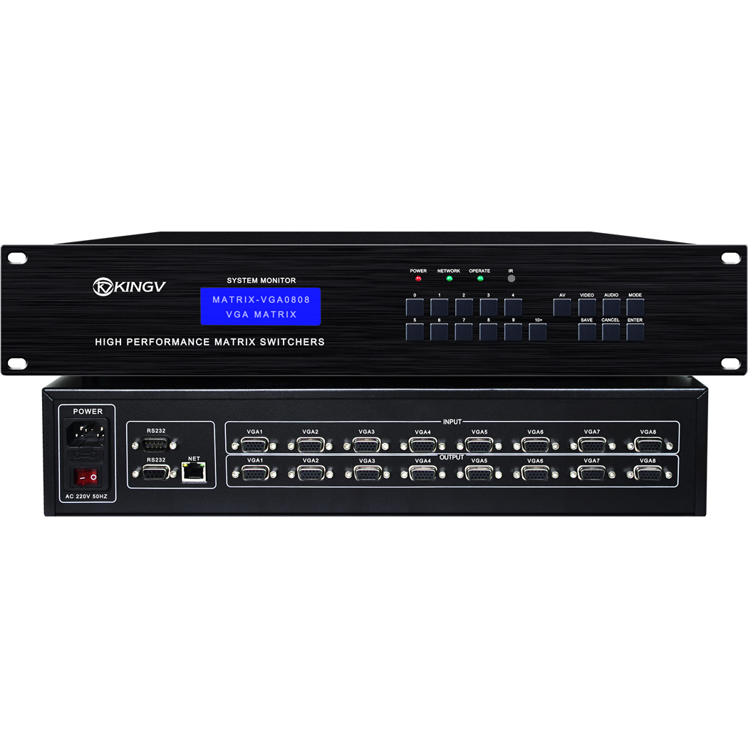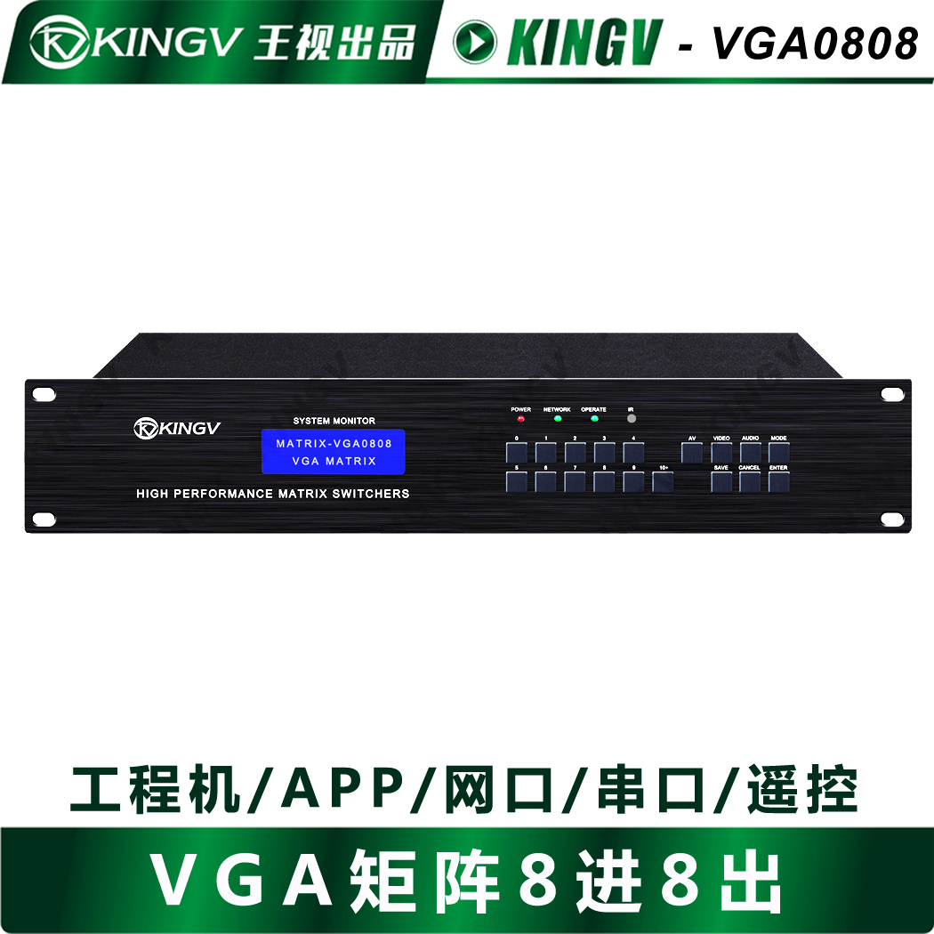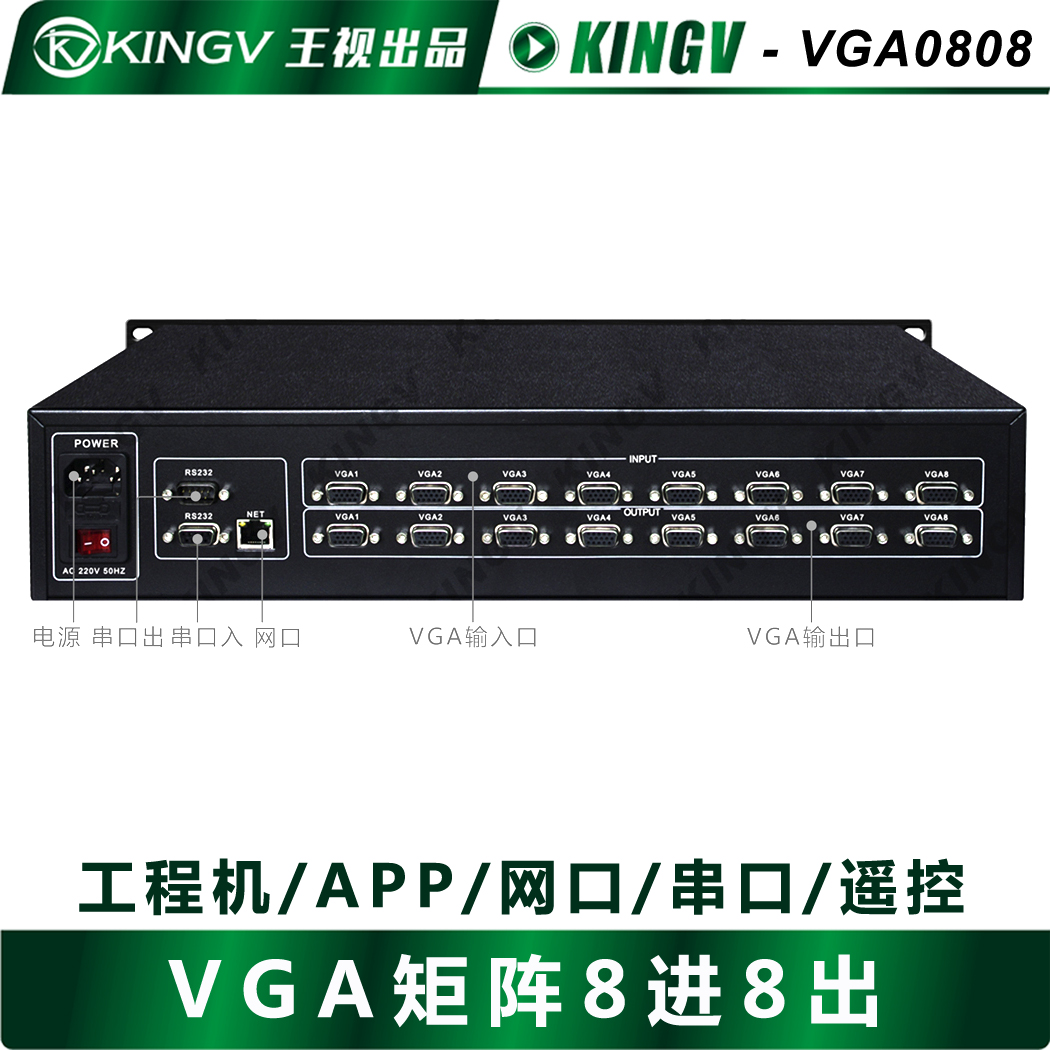 VGA matrix 8-in 8-out 4-way audio and video switcher simulation conference large screen splicing serial port network APP Wang Shi