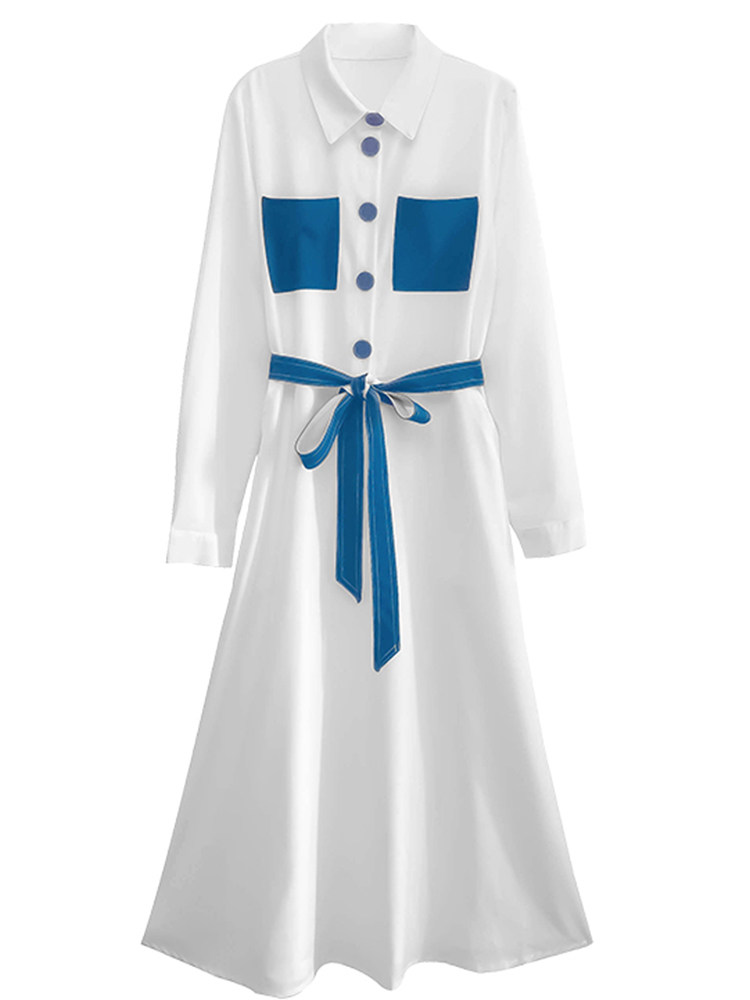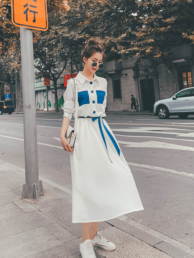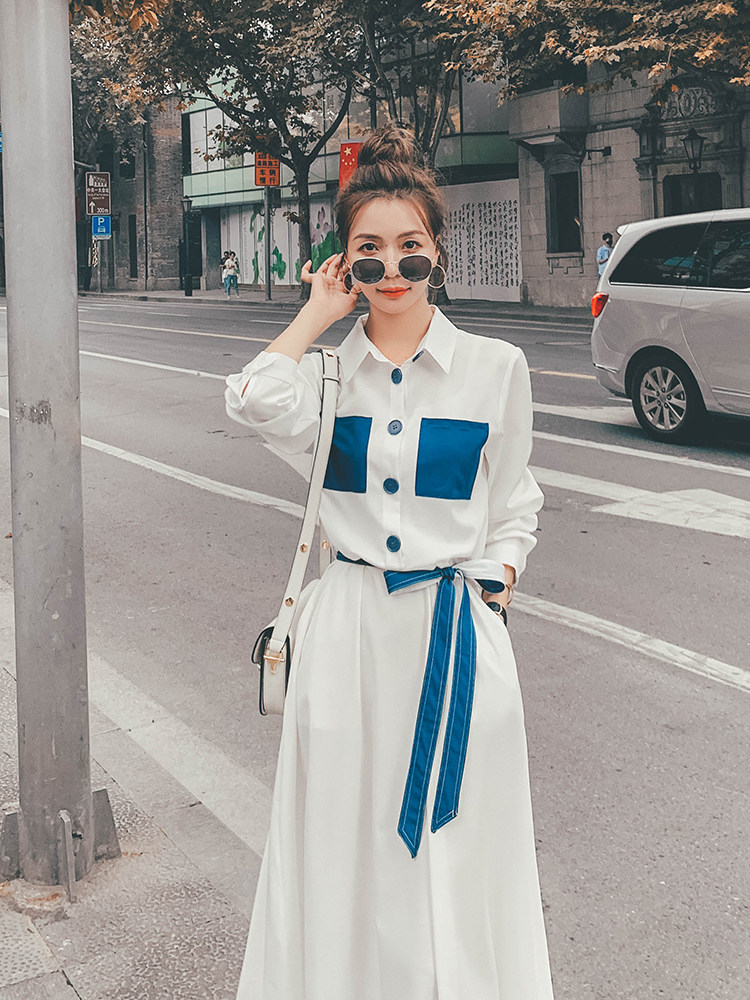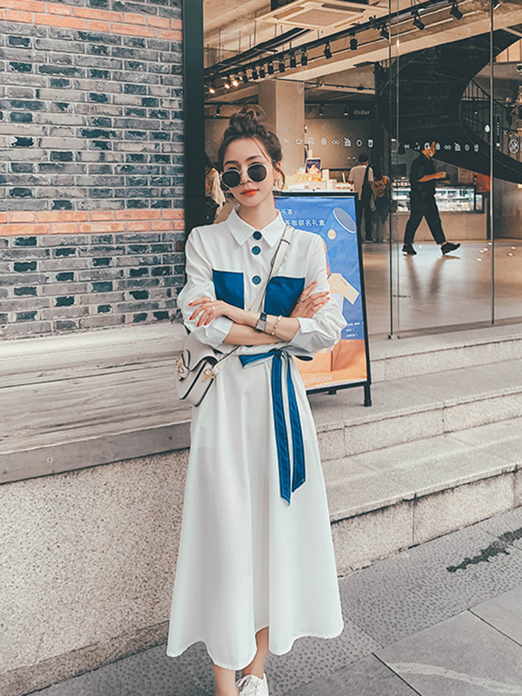 Lecea Alice long-sleeved dress women's 2022 spring new Korean version of the waist is skinny and foreign-style patchwork long skirt