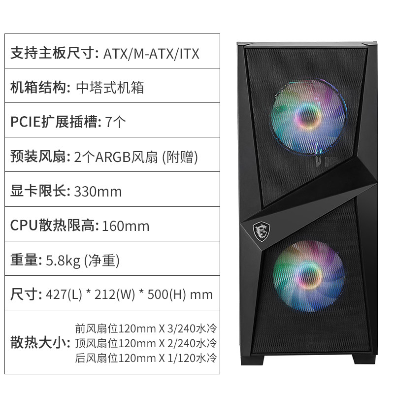 Microstar Gaming Chassis Warfare Axe Desktop Computer DIY Side Overdraft Host Shell Hitch 650750850 W Power Suit