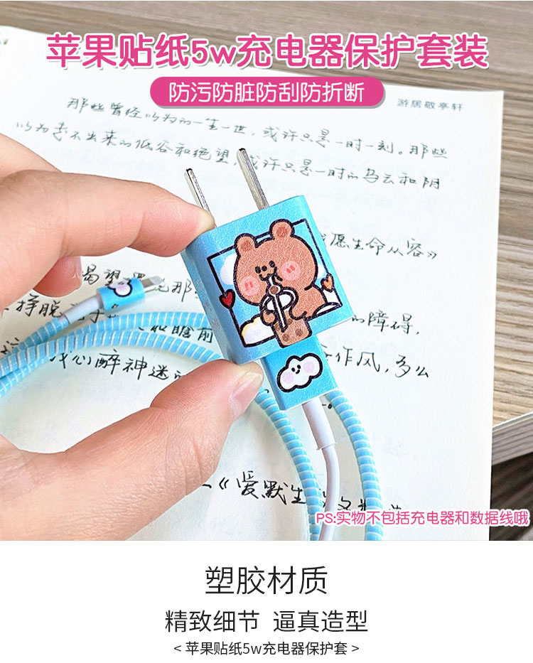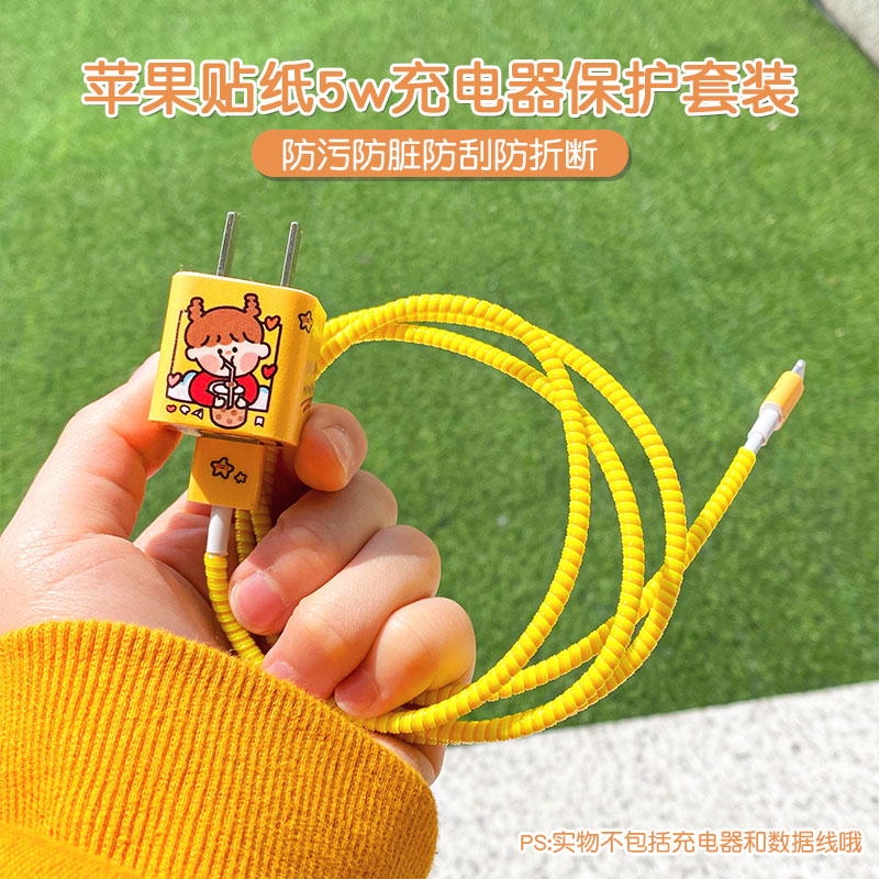 Apple charger sticker iPhone7plus xs paper creative scratch-resistant original suitable for 5w head self-adhesive glue-free cute cartoon cute sticker plug new 11 data cable 18w self-paste