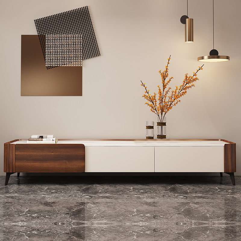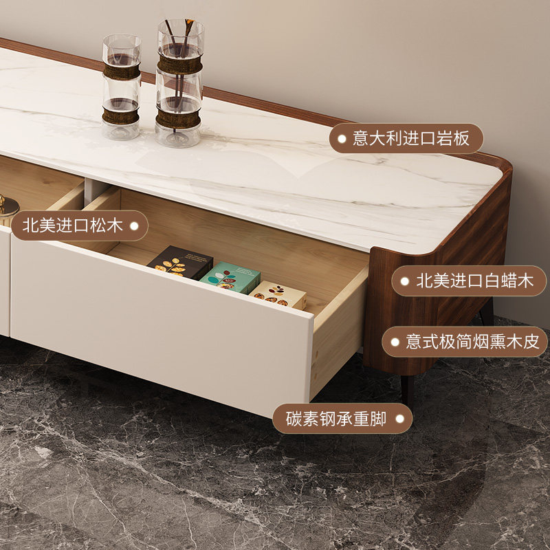 Light luxury wooden slate TV cabinet tea combination set modern minimal small household cabinet Northern European furniture