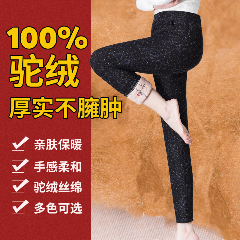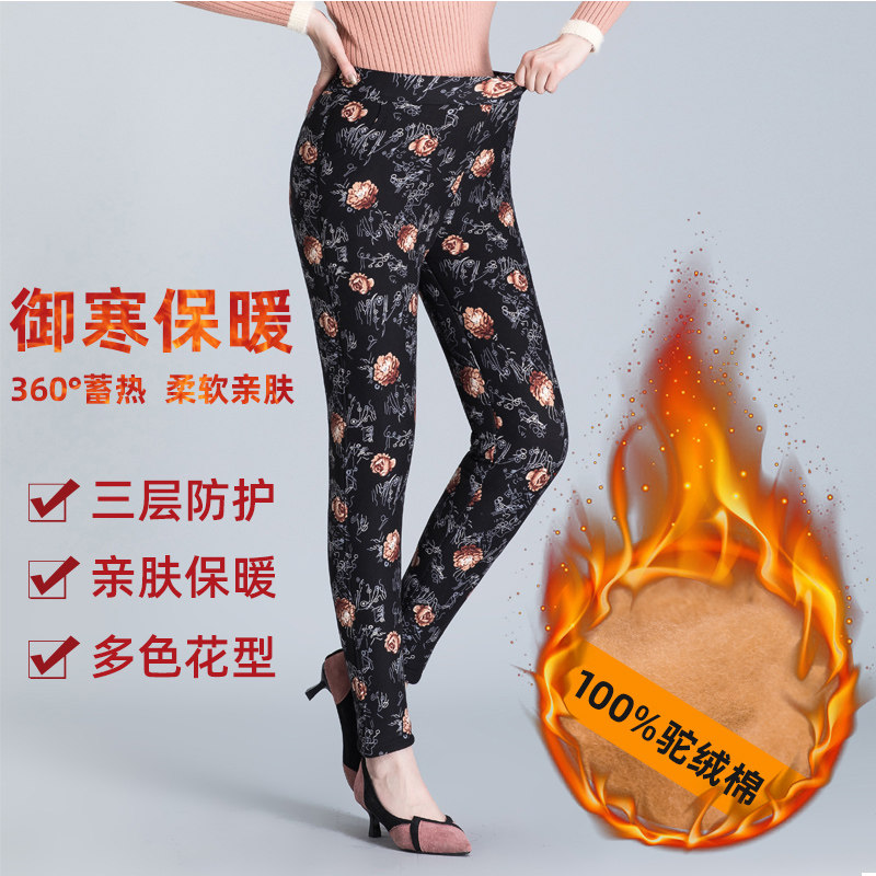 Old man cotton pants female granny loose middle-aged camel velvet outside wear thickened velvet winter high waist warm mom pants