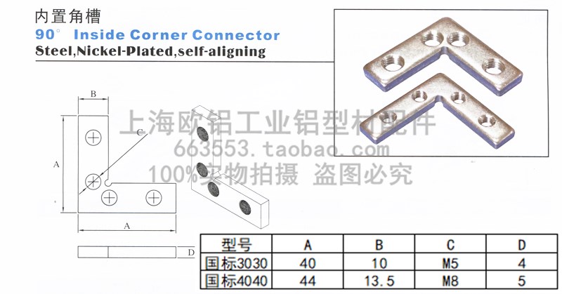 National Label 3030 4040 corner groove connecting piece 90-degree diagonal piece built-in corner groove L type right angle aluminium extrusion material accessory