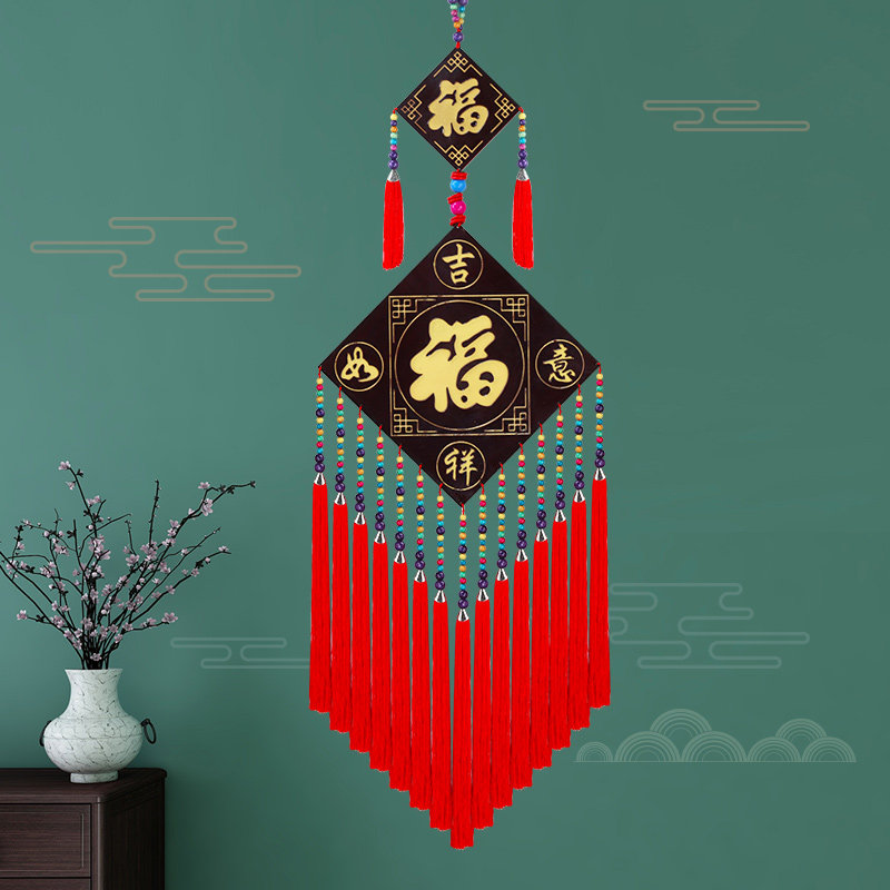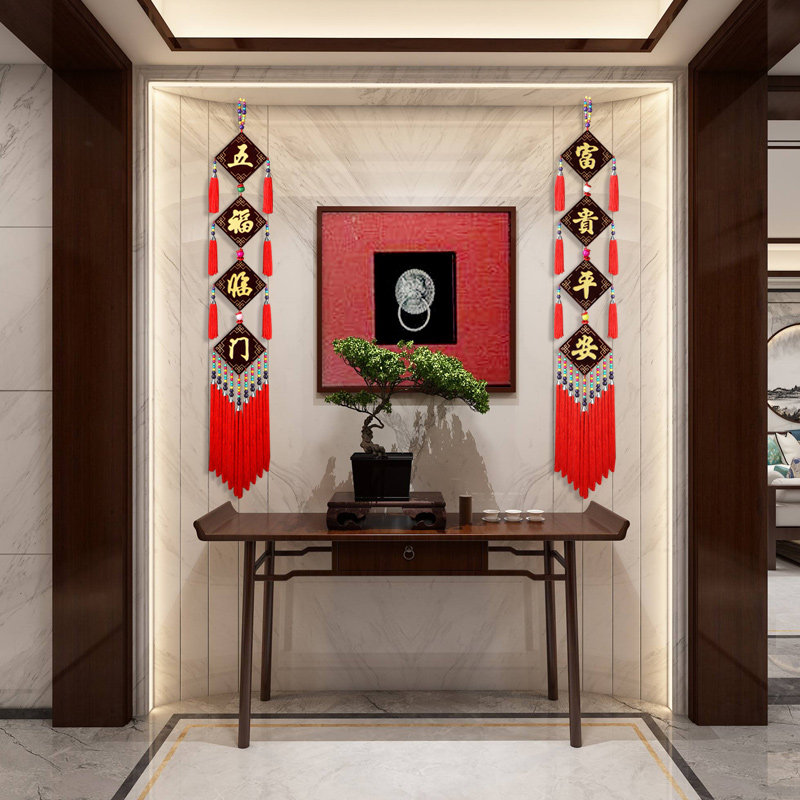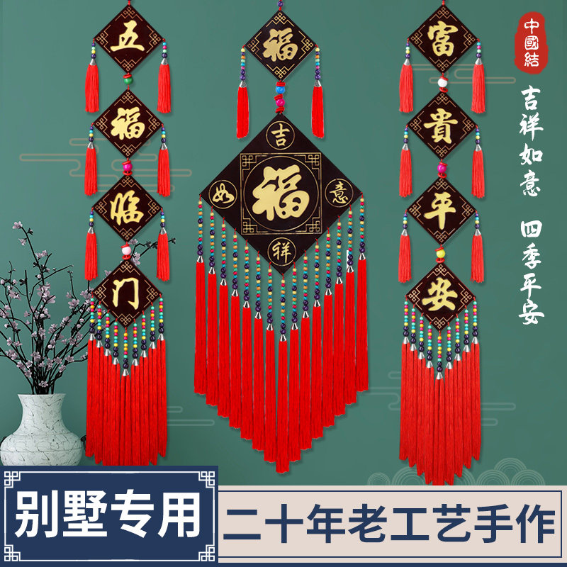 National Wind Peach Wood China Knot decoration New Chinese living room Large number book room background wall couplets decoration Xuanguan New Year