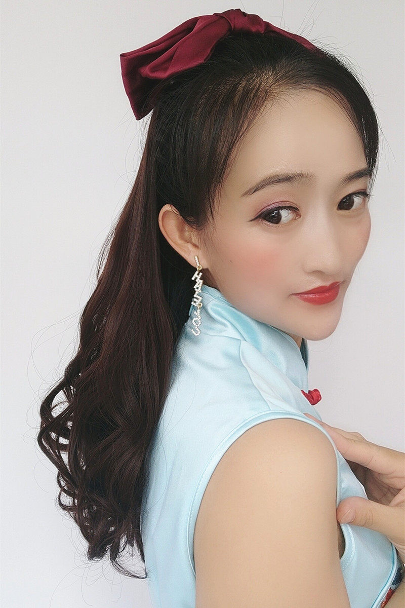 Light brown pear roll 55cm (wine red bow) Dark brown pear roll 55cm (wine red bow) Black brown pear roll 55cm (wine red bow) Black pear roll 55cm (wine red