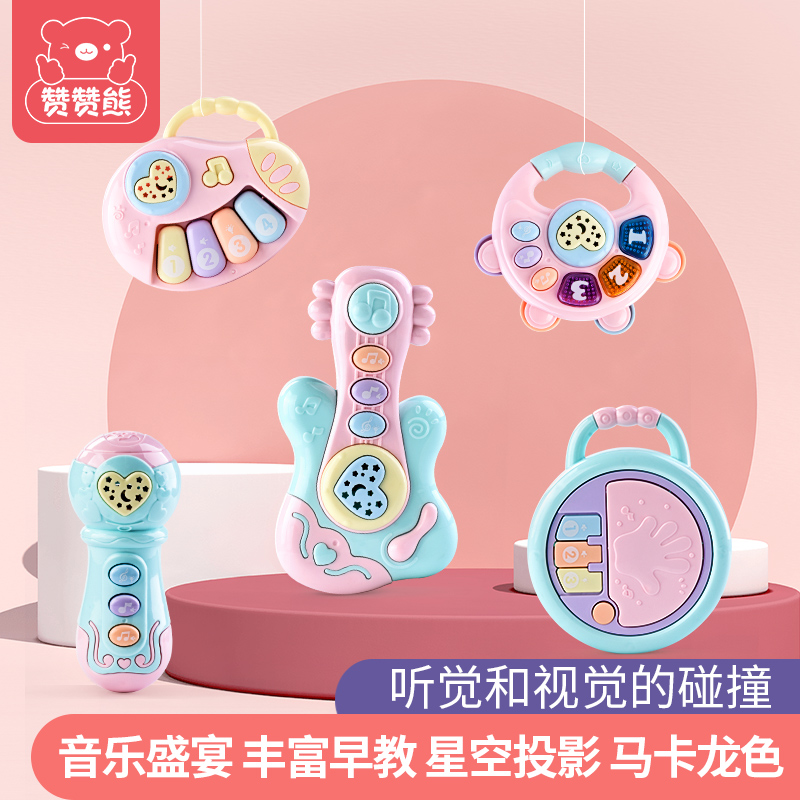 Hand clapping drum (color random) Guitar (Mint Green) Microphone (Color Random) Music Composition (Rattle Hand Beat Drum Microphone Piano) Hand rattle (cherry blossom pink) piano (cherry blossom)