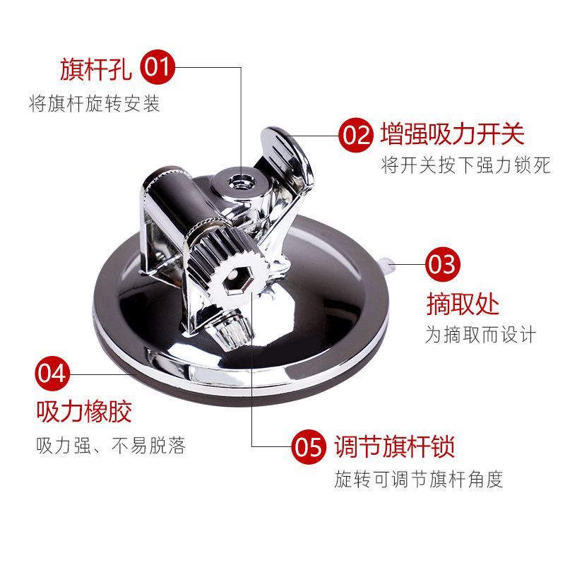 Nail-free-free suction cups Chess Rod Five Stars Red Flag Red Chess Rod Wall Flag Holder Glass Chess-Decorated Supplies Stainless Steel Chess Rod Aluminum Alloy Tile Wall Flag Base Wall Chess-Chess Rod